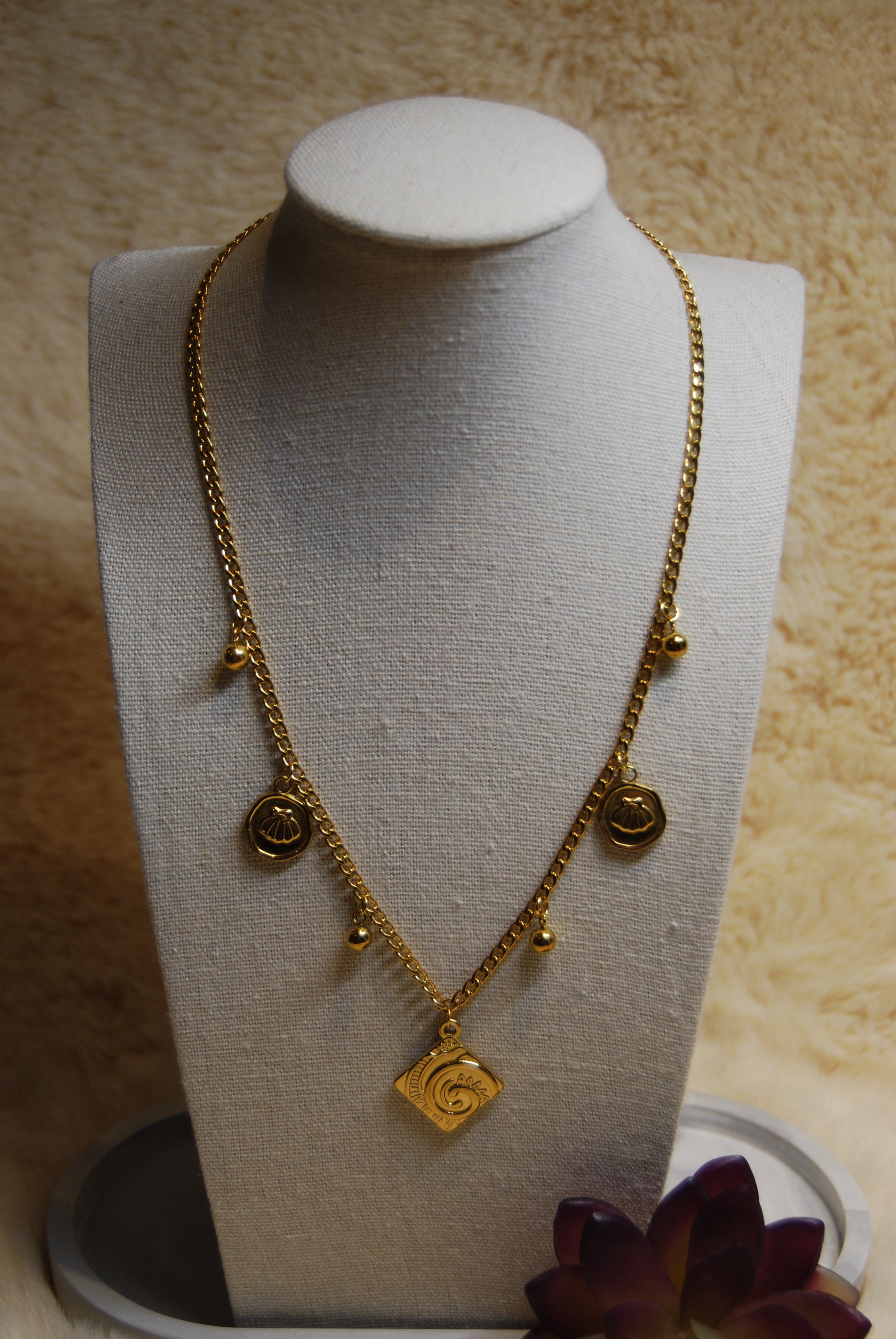 Apportez une touche de charme à votre style avec le collier AGATHE, en acier inoxydable doré scintillant. Ses breloques délicates ajoutent un brin de fantaisie, tandis que la taille réglable (41 cm + 5 cm de rajout) garantit un ajustement parfait pour toutes les envies. Une création artisanale qui mêle élégance et personnalité, idéale pour illuminer vos journées avec légèreté et originalité.