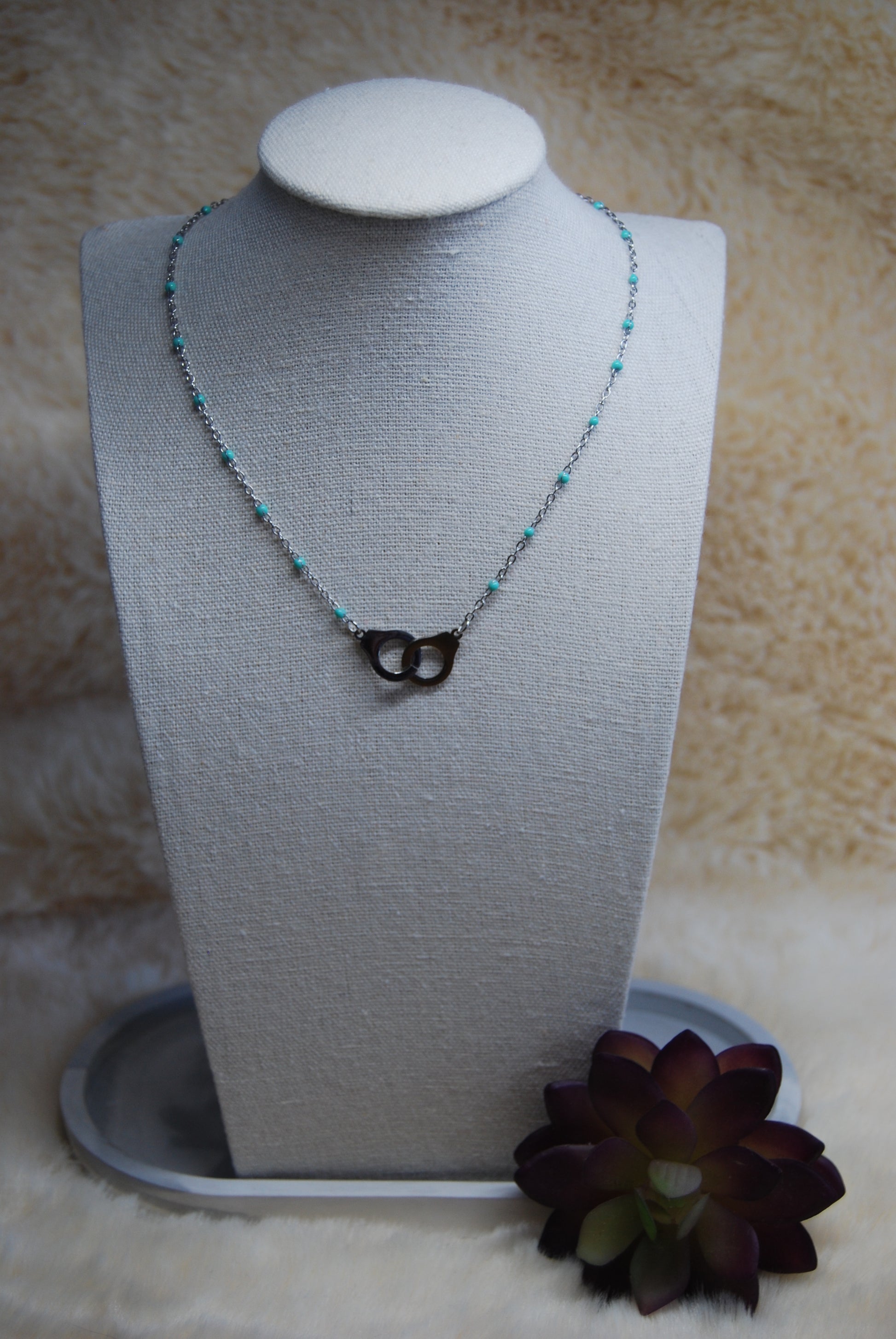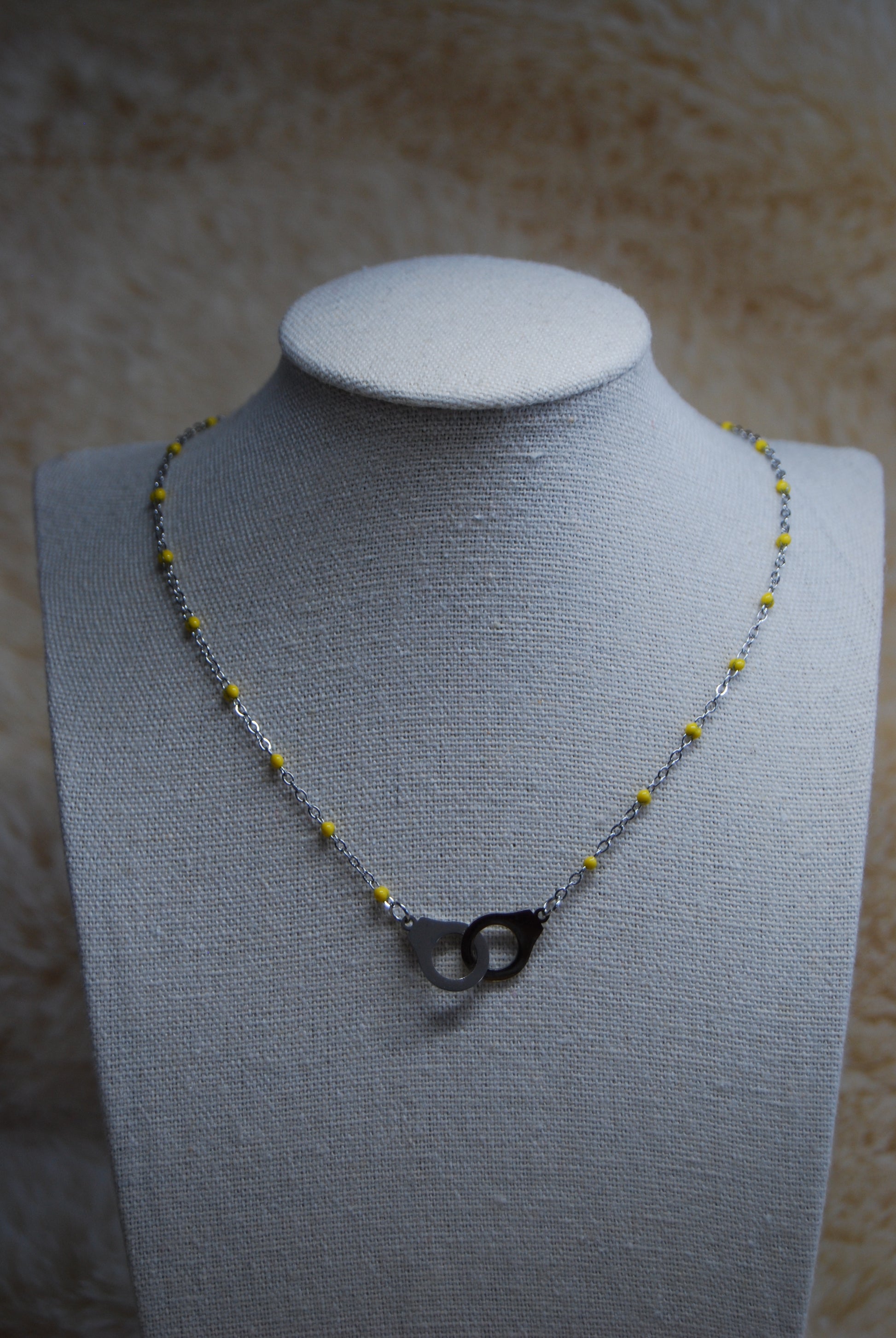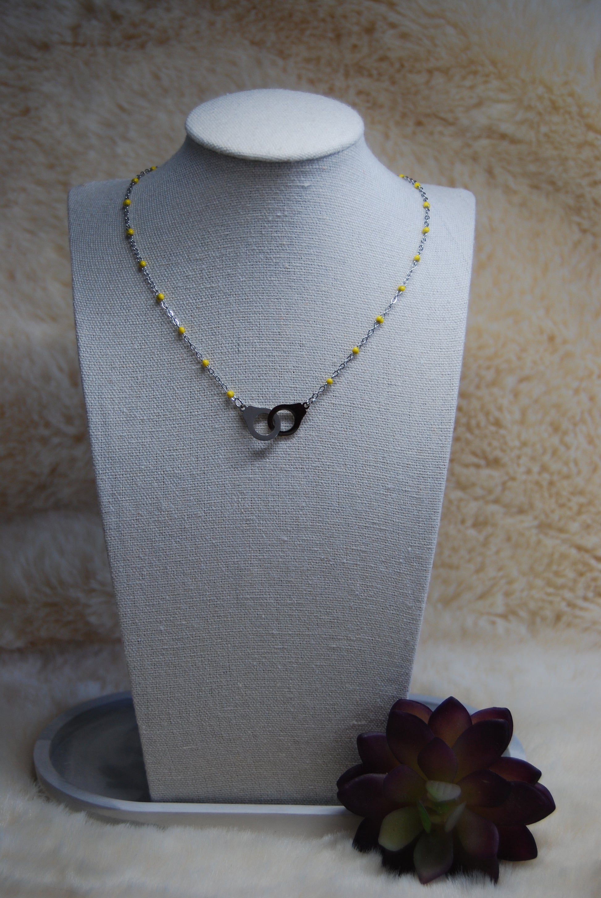 Apportez une touche de fantaisie à votre look avec le collier ANITA ! Sa menotte en acier inoxydable argenté se marie à une chaîne colorée aux multiples nuances, pour un style fun et décalé. Avec sa taille ajustable (35 cm + 5 cm de rajout), il s’adapte à toutes vos envies. Une création artisanale pleine de joie et de bonne humeur à porter sans modération !