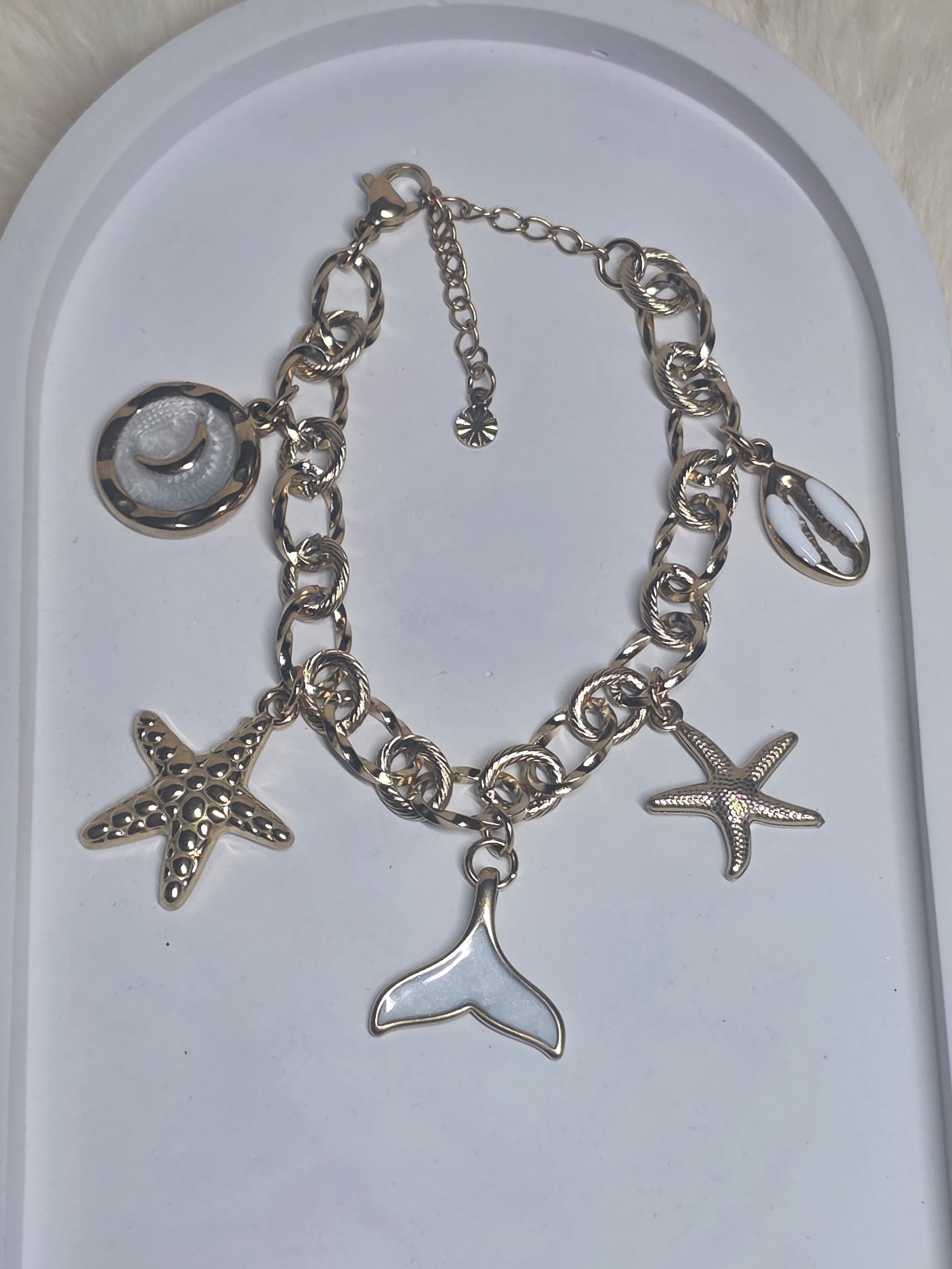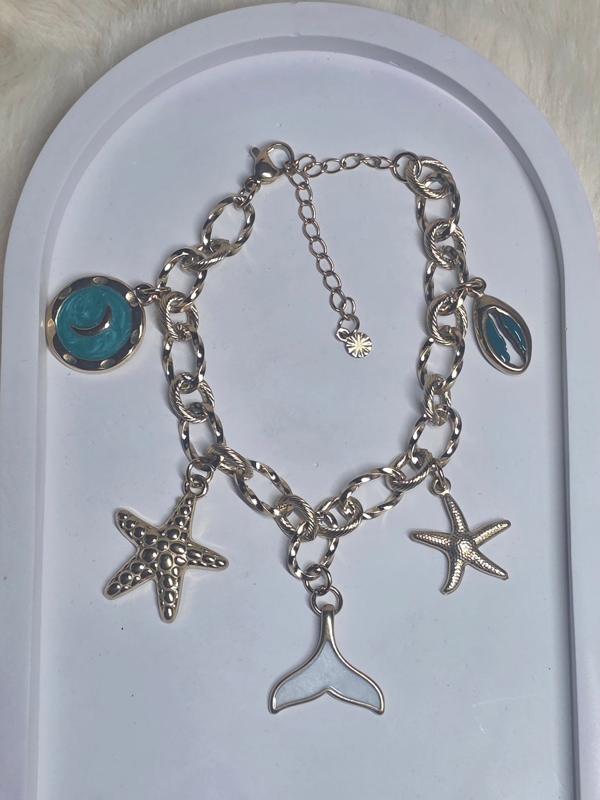 Découvrez le bracelet AQUA, une création artisanale mêlant acier inoxydable doré et breloques marines. Son design ludique et sa taille réglable (16 cm + 5 cm de rajout) en font l’accessoire parfait pour ajouter une touche d’été à toutes vos tenues. Laissez-vous emporter par son charme marin et adoptez ce bijou unique qui ravira votre quotidien avec style et légèreté.