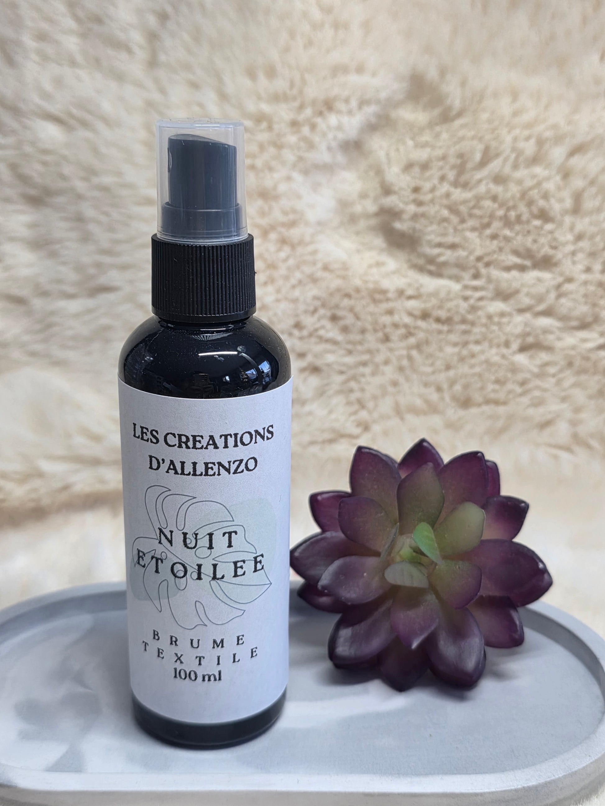 Transformez vos textiles avec la Brume NUIT ETOILEE, un vaporisateur de 100 ml qui ajoute une atmosphère mystérieuse et envoûtante à vos draps, rideaux et canapé. Laissez-vous emporter par son sillage unique et audacieux, parfait pour sublimer chaque moment de votre intérieur. Osez l’expérience sensorielle qui révèle toute la magie de la nuit sur vos tissus préférés.