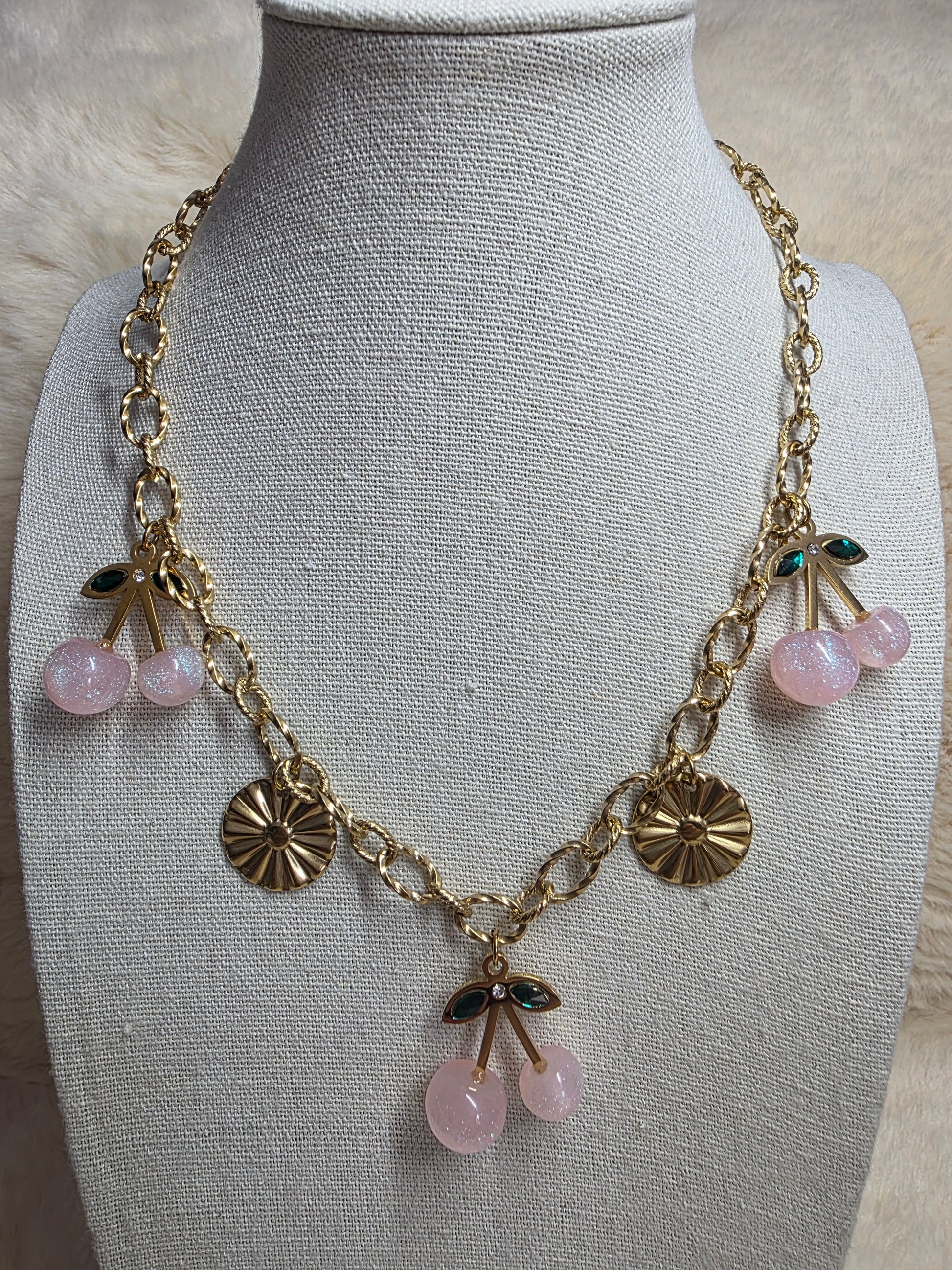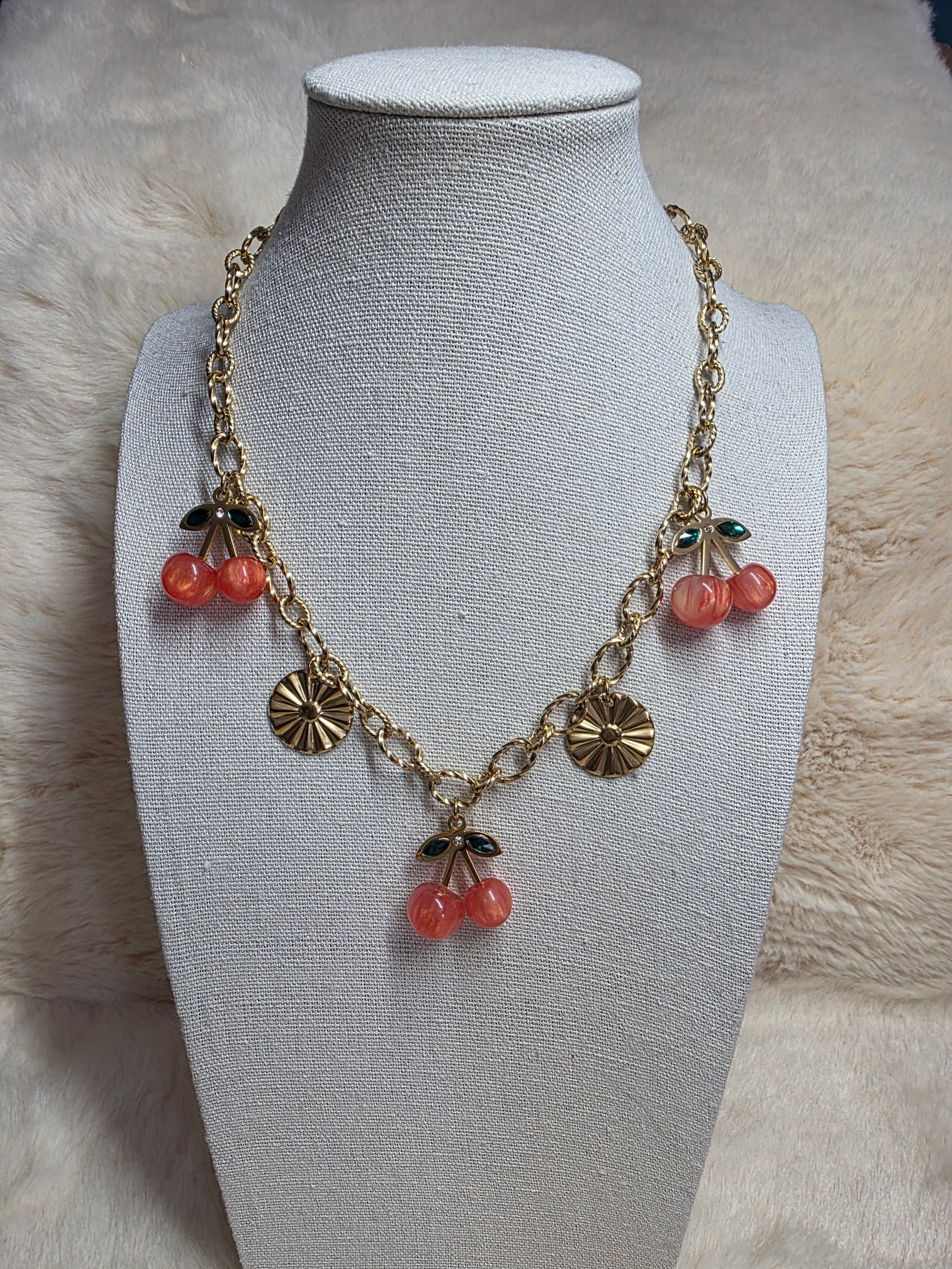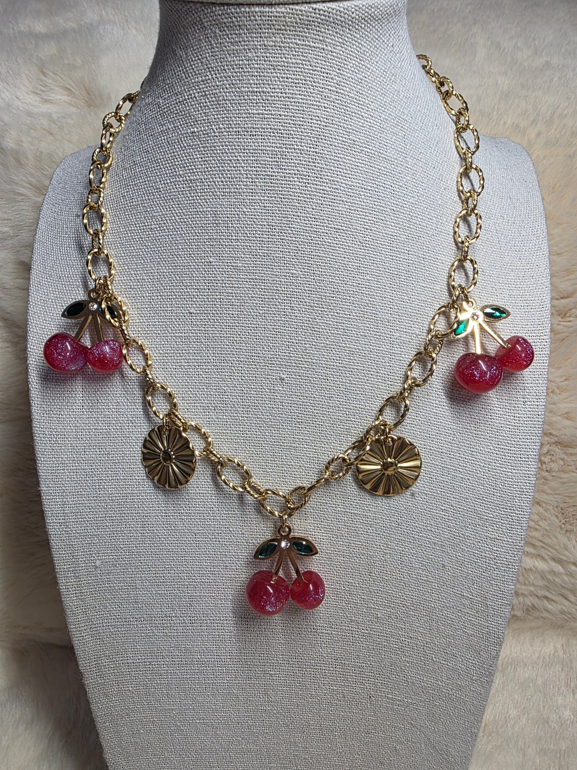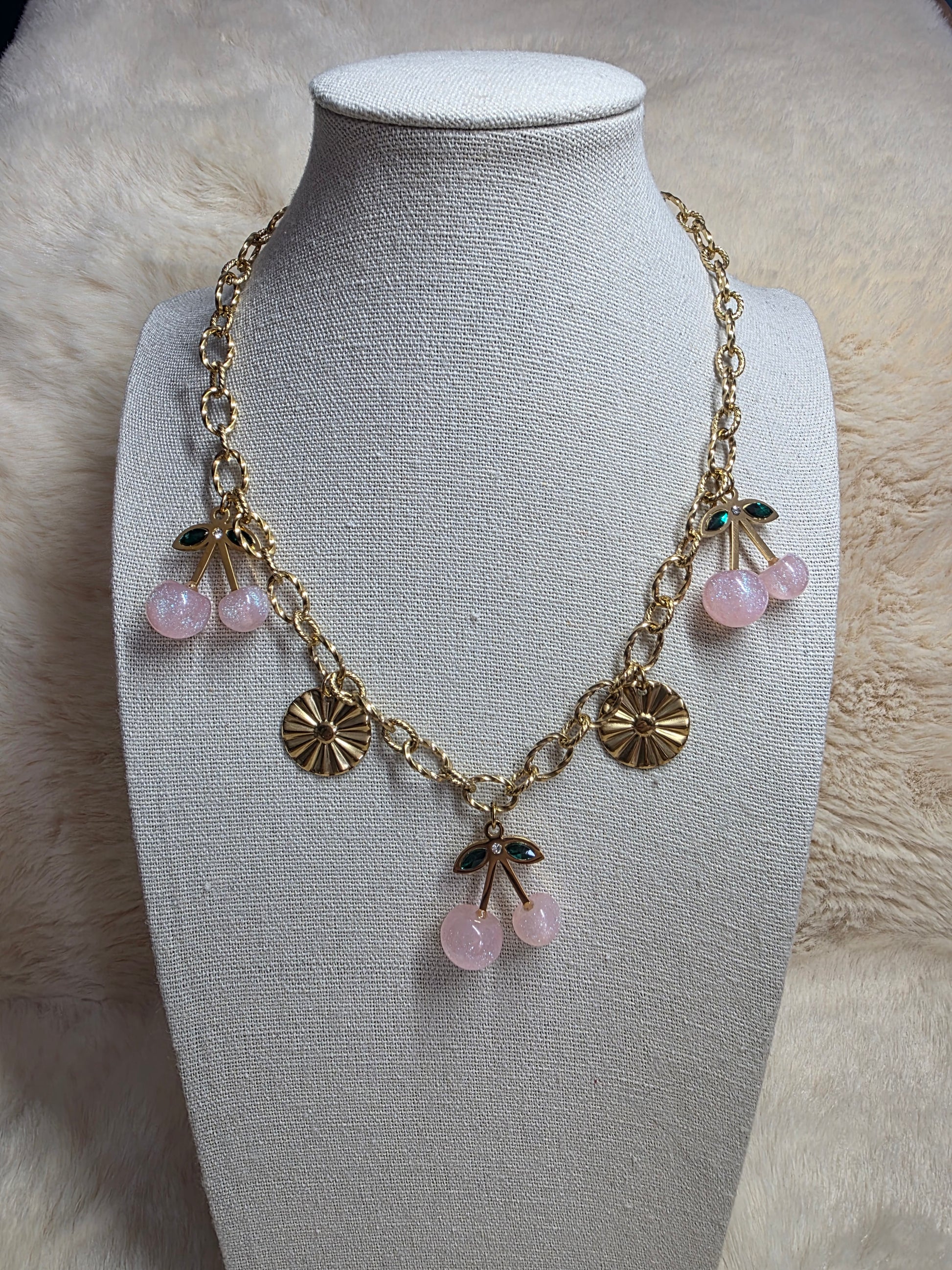 Osez affirmer votre style avec le collier CHERRY en acier inoxydable doré, orné de breloques cerises éclatantes aux couleurs vibrantes. Sa taille réglable (41,5 cm + 5 cm de rajout) vous offre un porté audacieux et personnalisé. Chaque création artisanale reflète une touche unique et rebelle, parfaite pour celles qui veulent se démarquer avec éclat.
