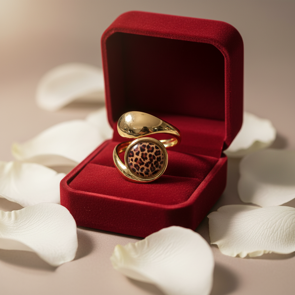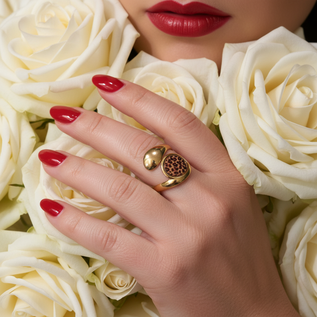 Bague CINDY : une interprétation moderne du motif léopard en acier inoxydable doré. Taille réglable pour un ajustement parfait au quotidien. Matière noble, elle conjugue audace et intemporalité. Une signature de style à porter seule ou en accumulation pour affirmer votre élégance personnelle.