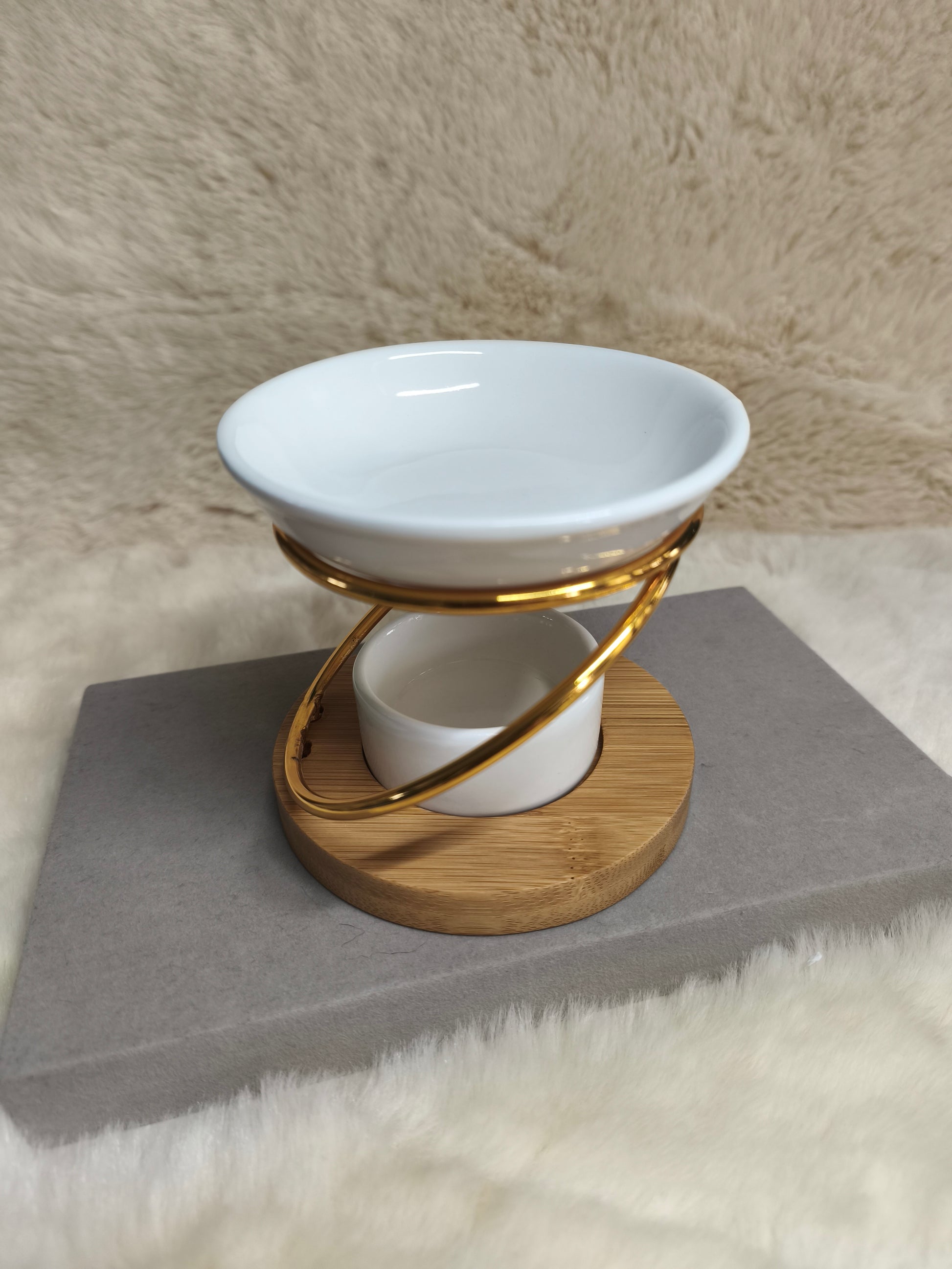 Apportez une touche sensorielle et déco à votre intérieur avec ce diffuseur à fondants parfumés alliant céramique, bois et métal. Facile à utiliser, il diffuse vos senteurs préférées en douceur pour créer une ambiance chaleureuse et unique. Un petit objet malicieux qui transforme chaque pièce en un véritable cocon parfumé ! Taille: H10 x 11 cm.
