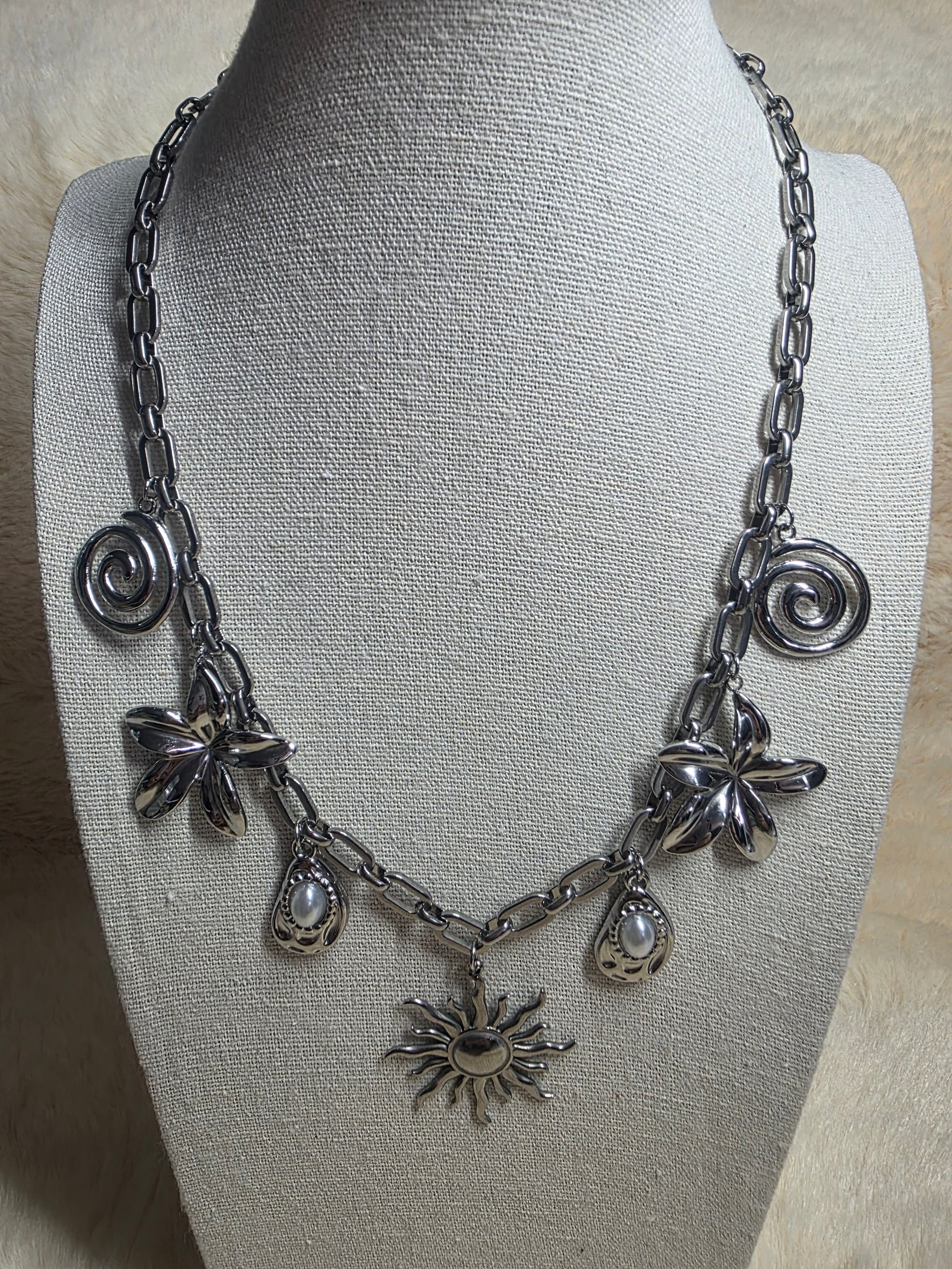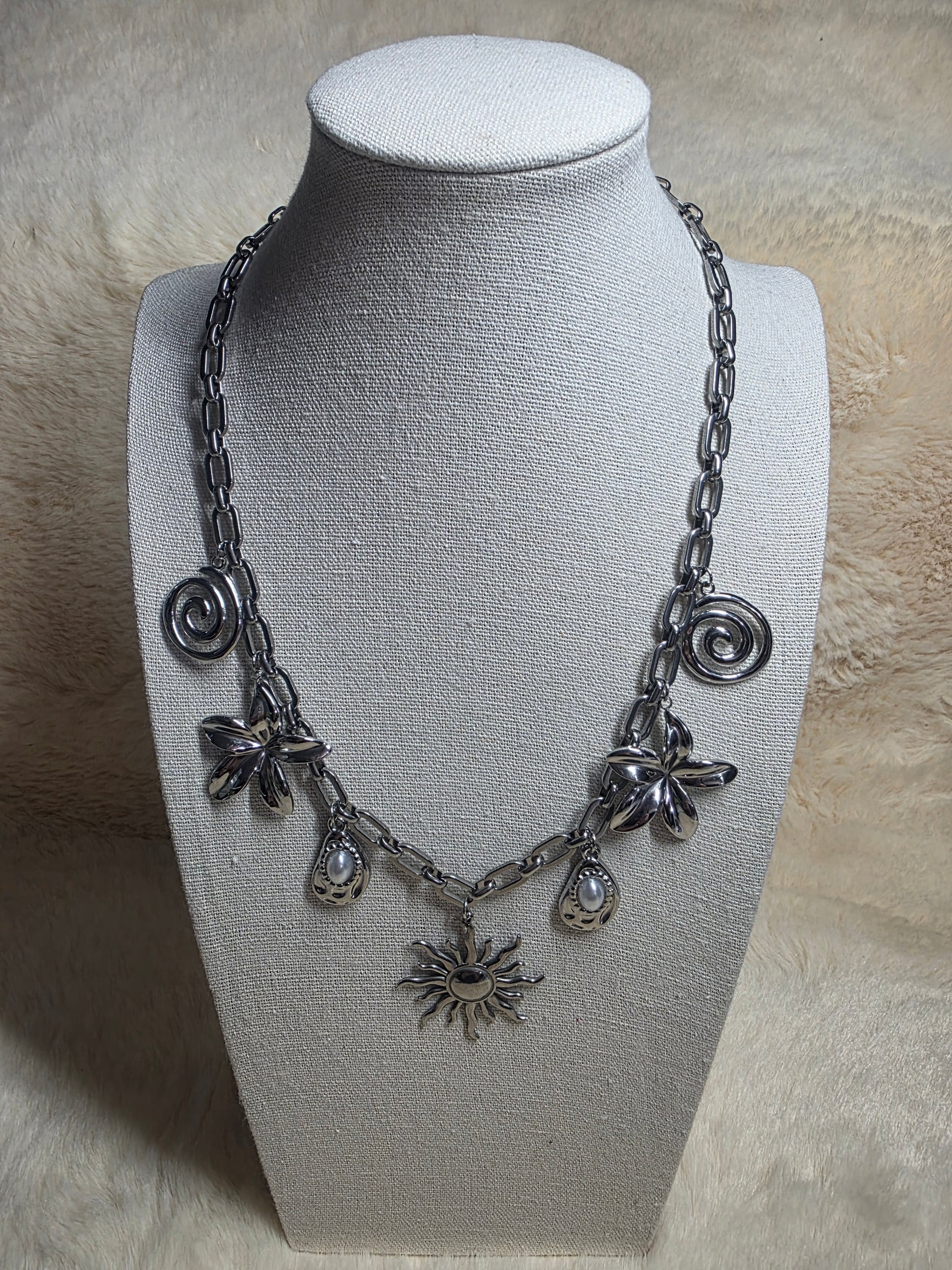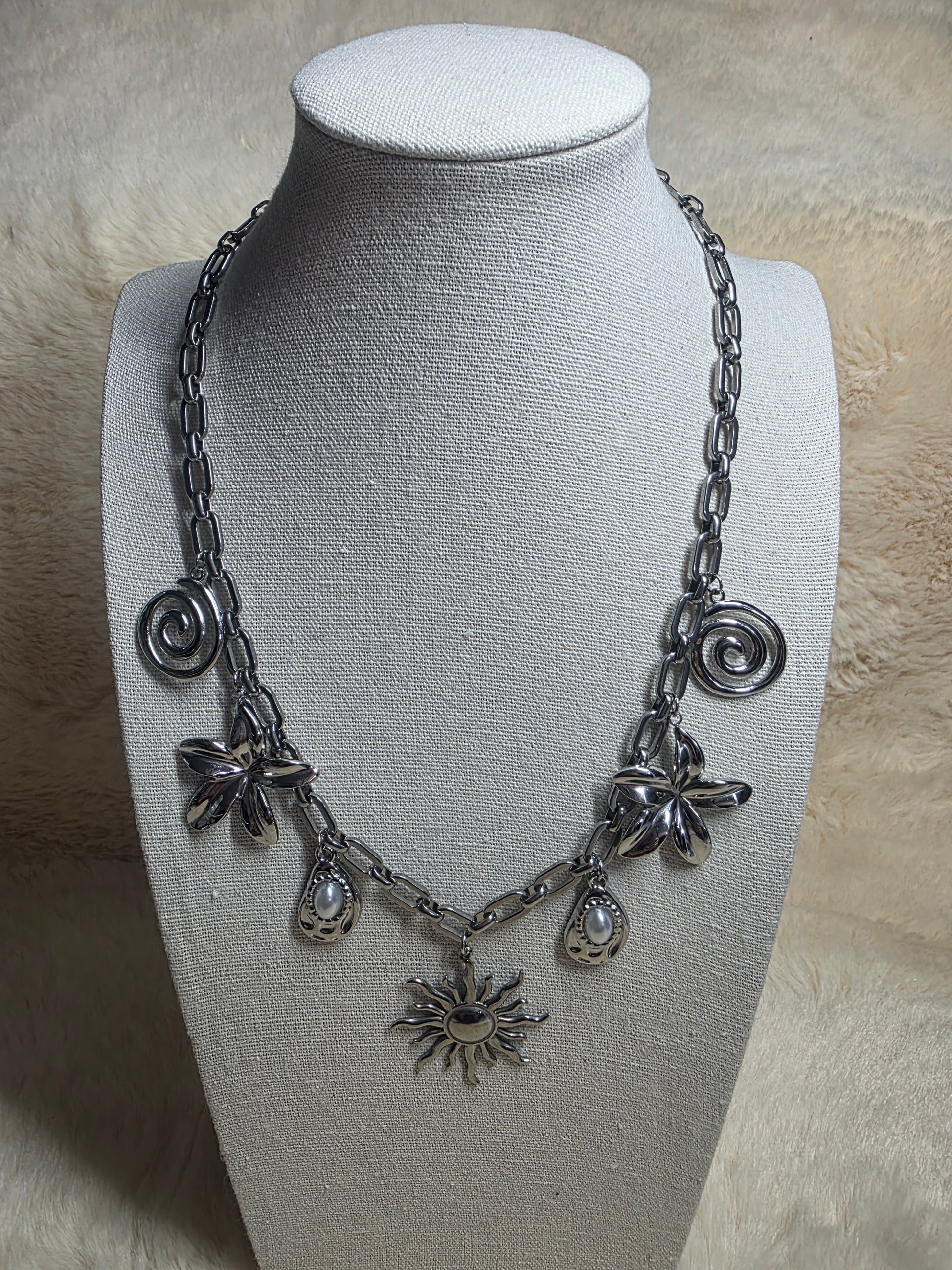 Apportez une touche malicieuse à votre style avec le collier FLORA ARGENTE. Confectionné en acier inoxydable argenté, ce bijou artisanal est orné de breloques charmantes qui dansent avec vous. Sa taille réglable (46 cm + 5 cm de rajout) s’adapte à toutes vos envies, pour un look aussi unique que vous. Laissez FLORA ARGENTE révéler votre esprit espiègle et lumineux au quotidien.
