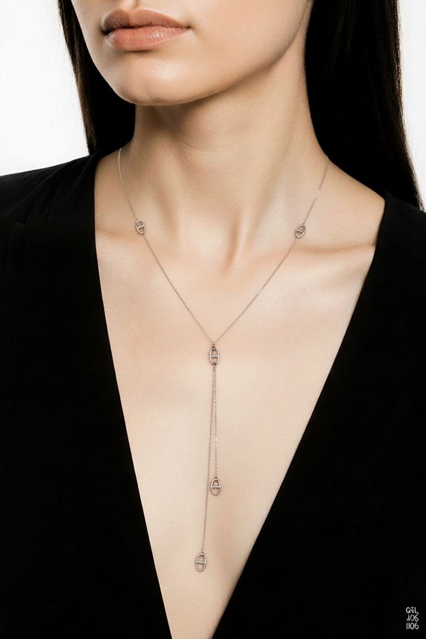 Découvrez le collier FLORENCE, une création artisanale qui joue avec l'élégance intemporelle. Cette chaîne Y en maille marine, confectionnée en acier inoxydable, se décline en finition dorée ou argentée selon vos envies. Réglable à votre convenance, elle s'adapte à chaque silhouette pour un port confortable et flatteur. Un bijou pensé pour celles qui aiment les pièces raffinées avec une touche de fantaisie. Longueur chaîne totale 62 cm + Y(18,5 cm) + 5 cm de rajout.