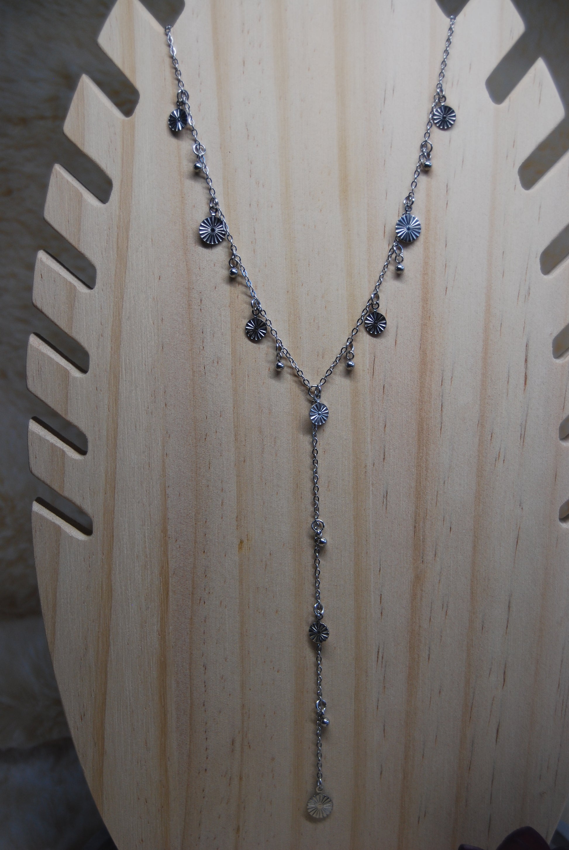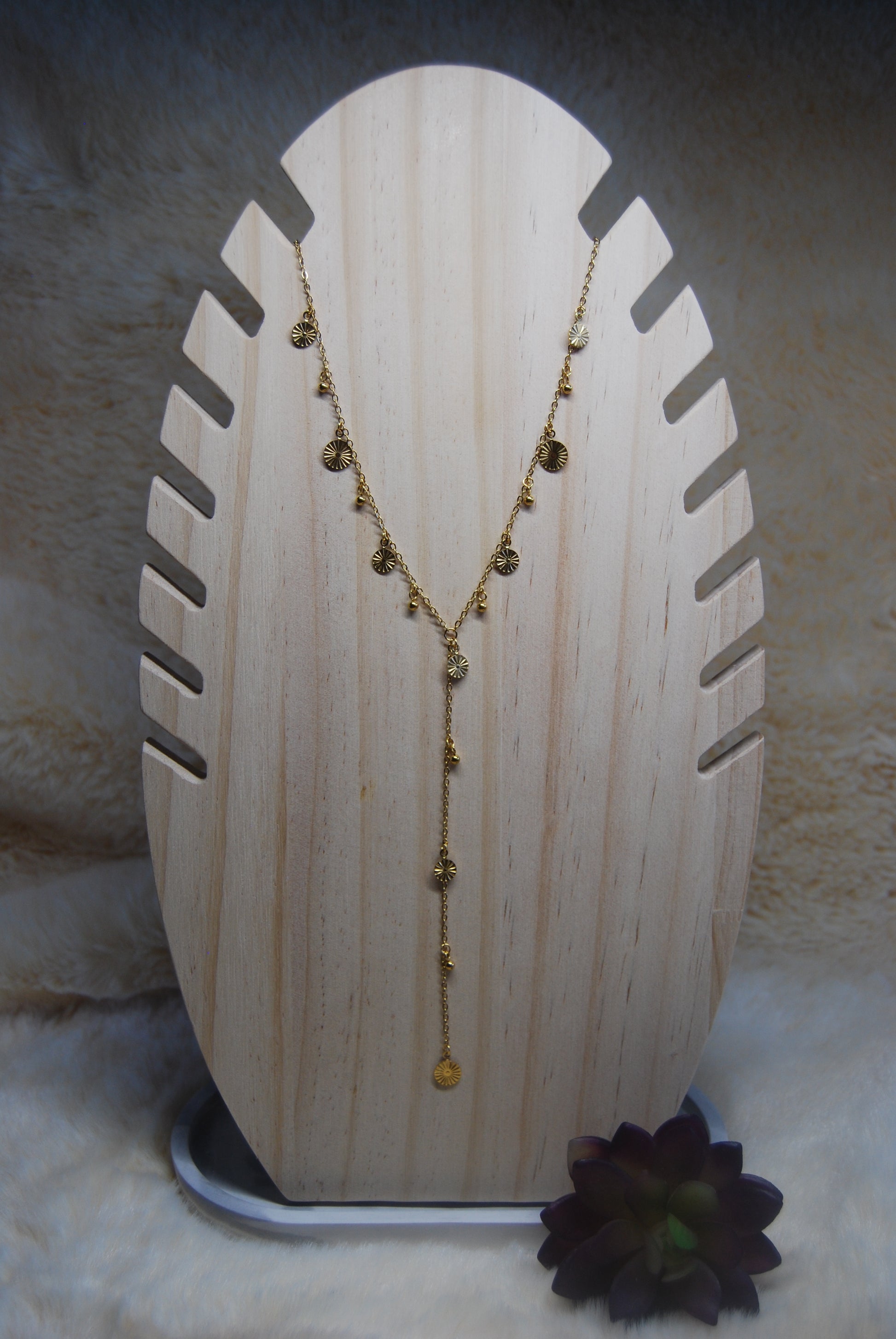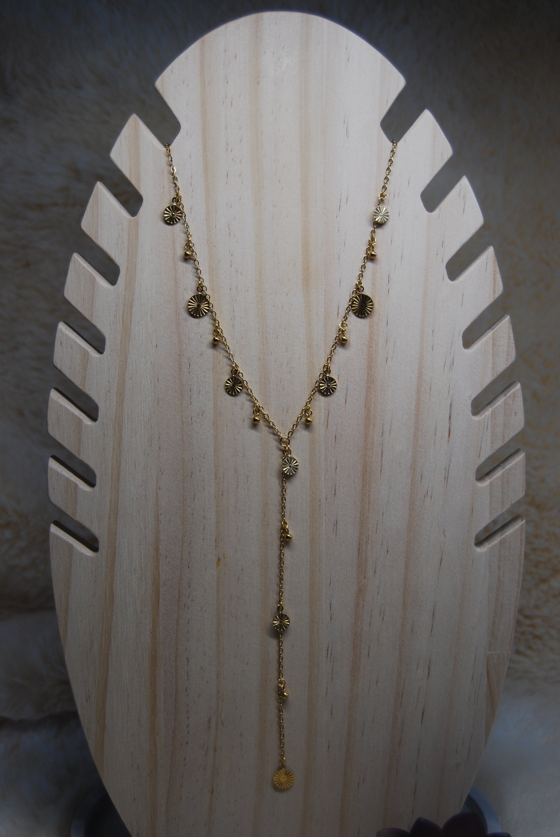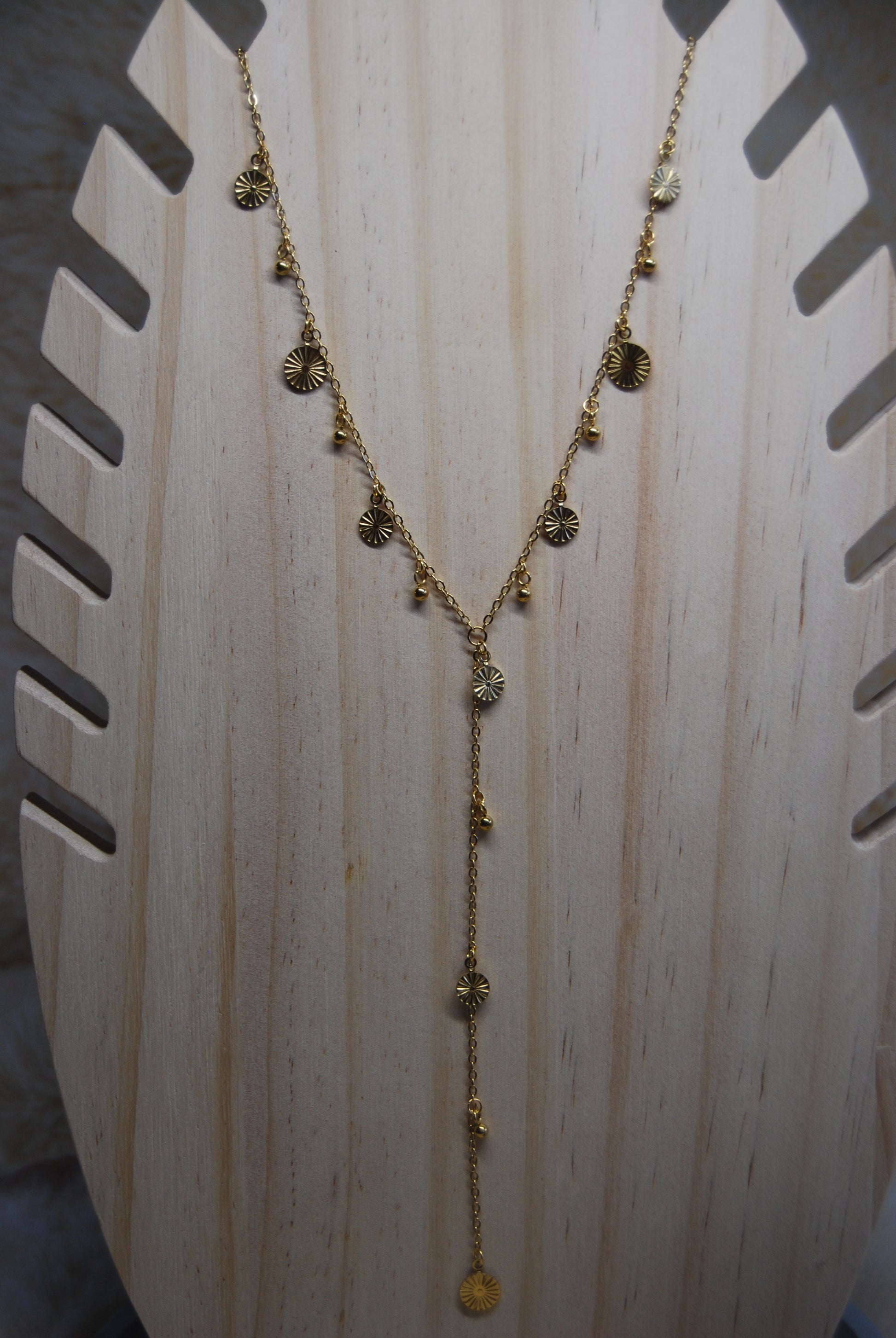 Découvrez JADE, un collier Y en acier inoxydable doré ou argenté, orné de fines breloques délicates. Sa taille réglable s’adapte parfaitement à chaque style, pour un look aussi unique que vous. Artisanale et légère, cette création ajoute une touche pétillante et raffinée à toutes vos tenues. Laissez JADE vous accompagner avec charme au quotidien !