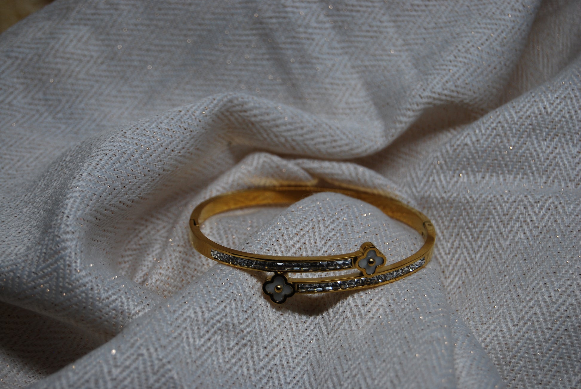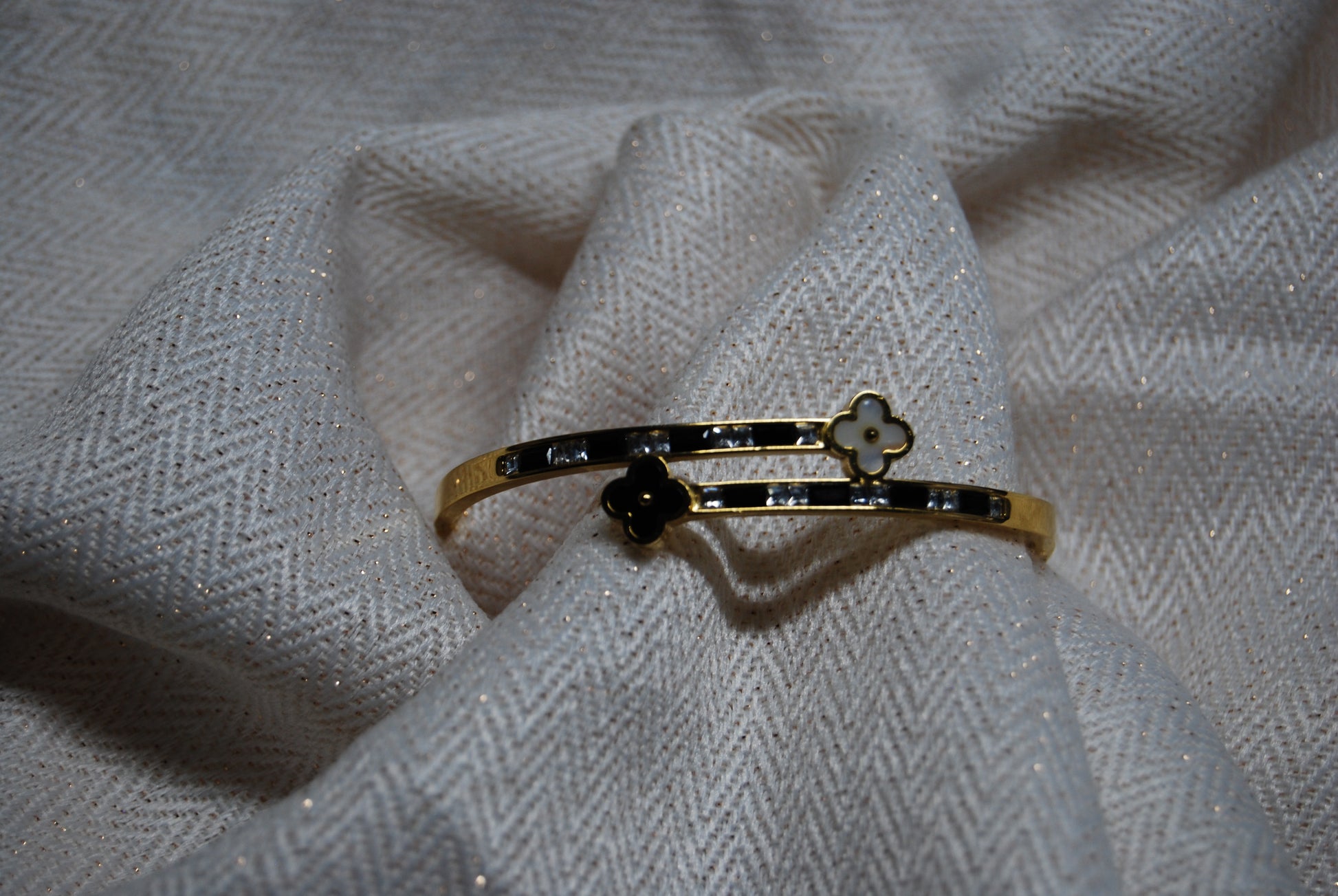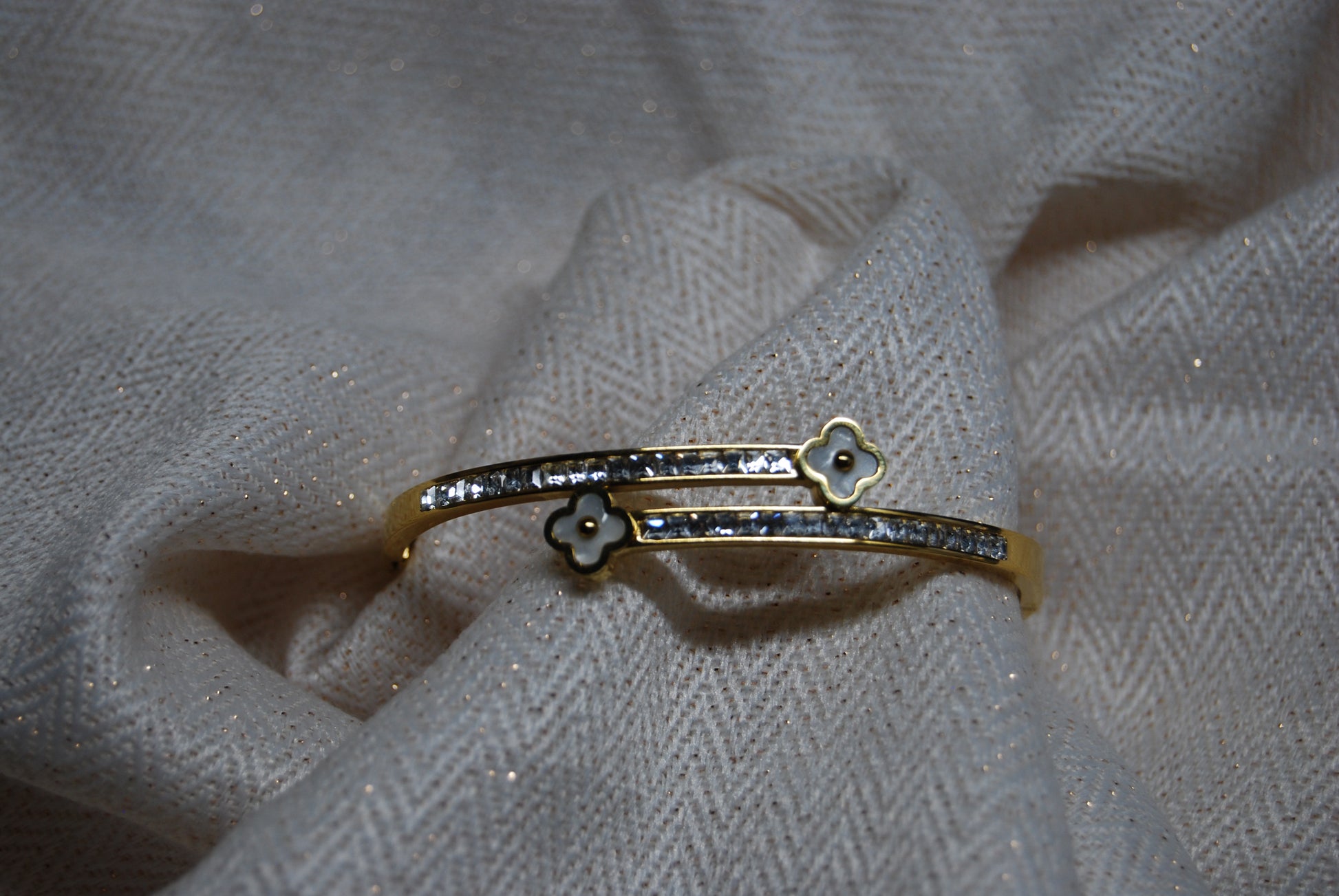 Apportez une touche d’éclat à votre style avec le jonc JADE, en acier inoxydable doré ou argenté orné de strass scintillants. Son design délicat et ses multiples couleurs disponibles s’adaptent à toutes vos envies pour briller au quotidien avec légèreté et bonne humeur. Un accessoire parfait pour révéler votre personnalité pétillante !