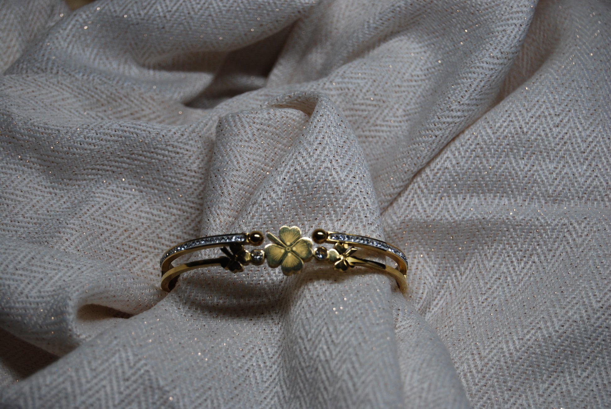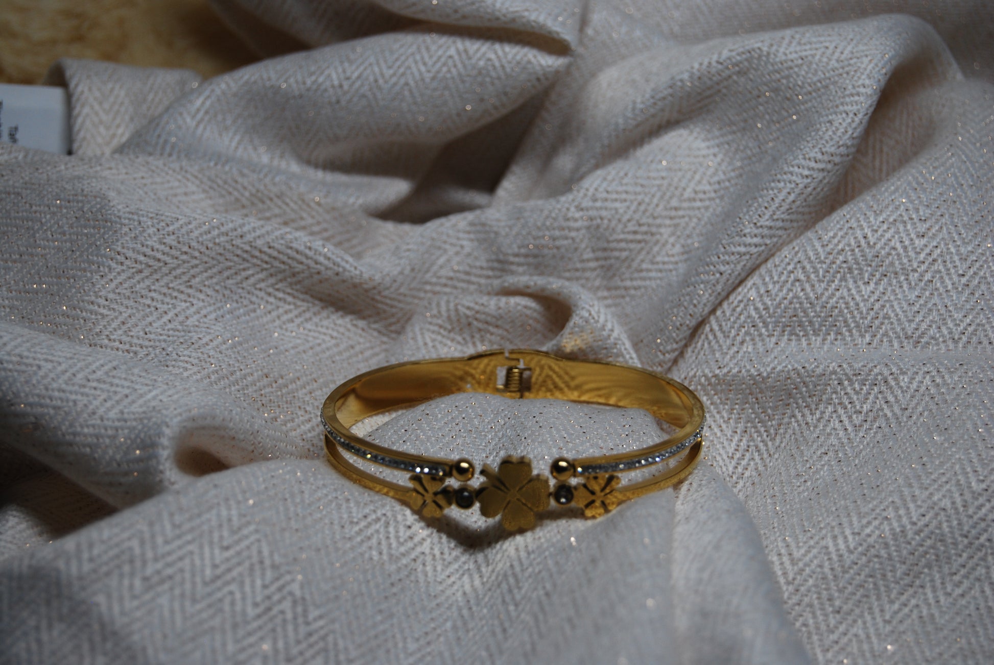 Apportez une touche de malice à votre style avec le jonc MANON en acier inoxydable doré, orné de strass scintillants. Sa fermeture à ressort sur le dessus facilite son enfilage tout en assurant un maintien parfait. Un bijou léger et pétillant, idéal pour illuminer vos tenues du quotidien avec élégance et espièglerie.