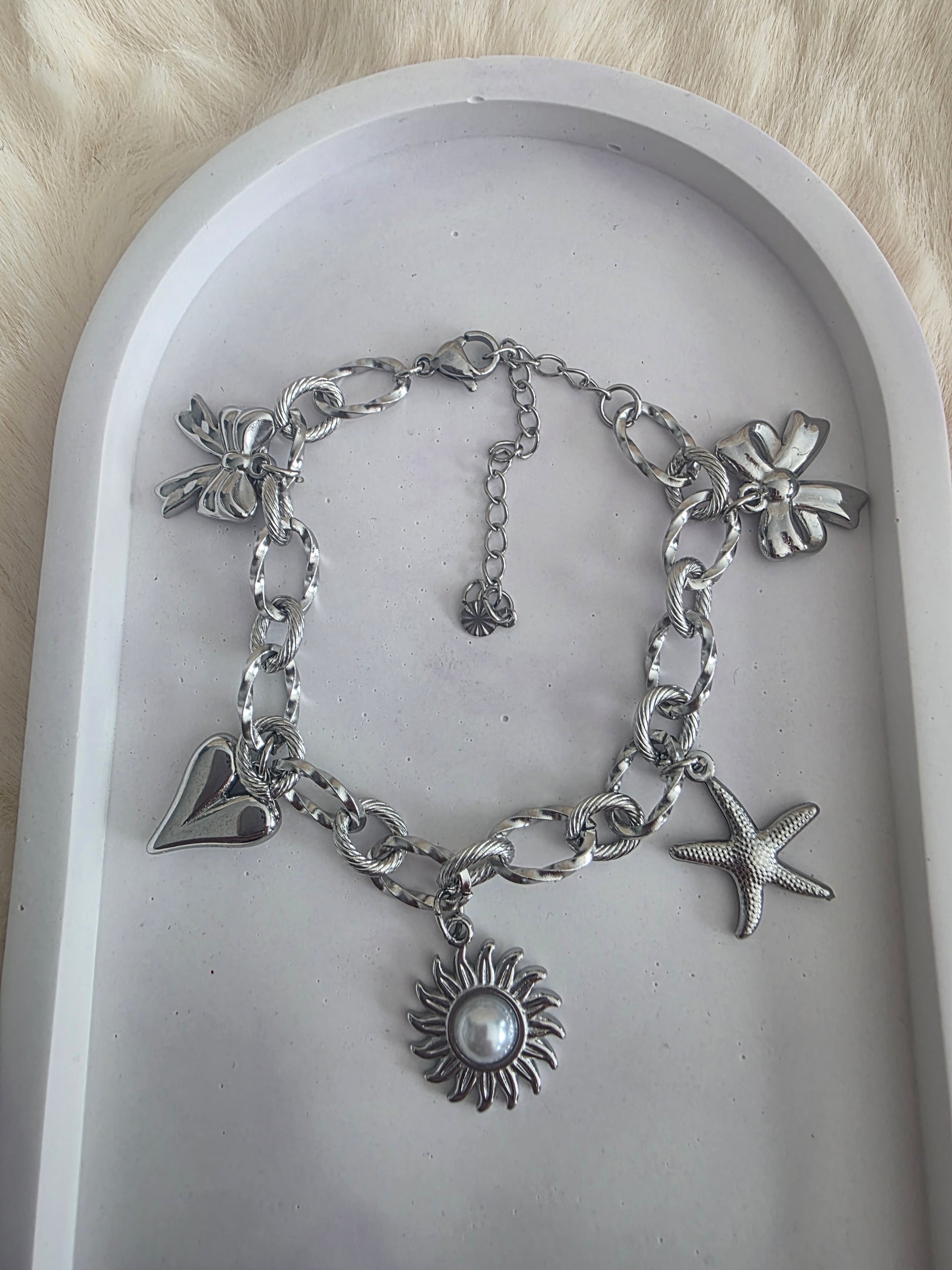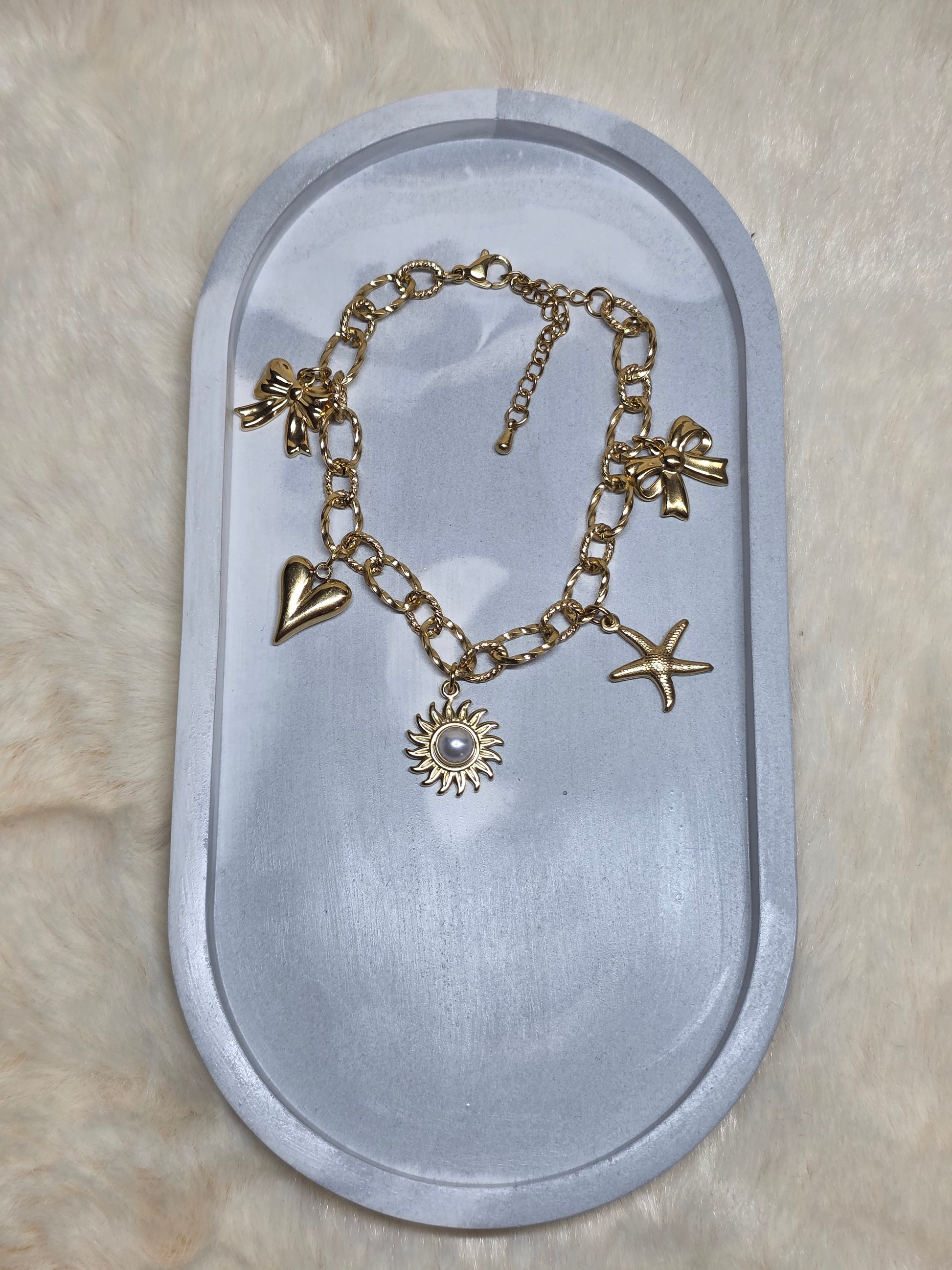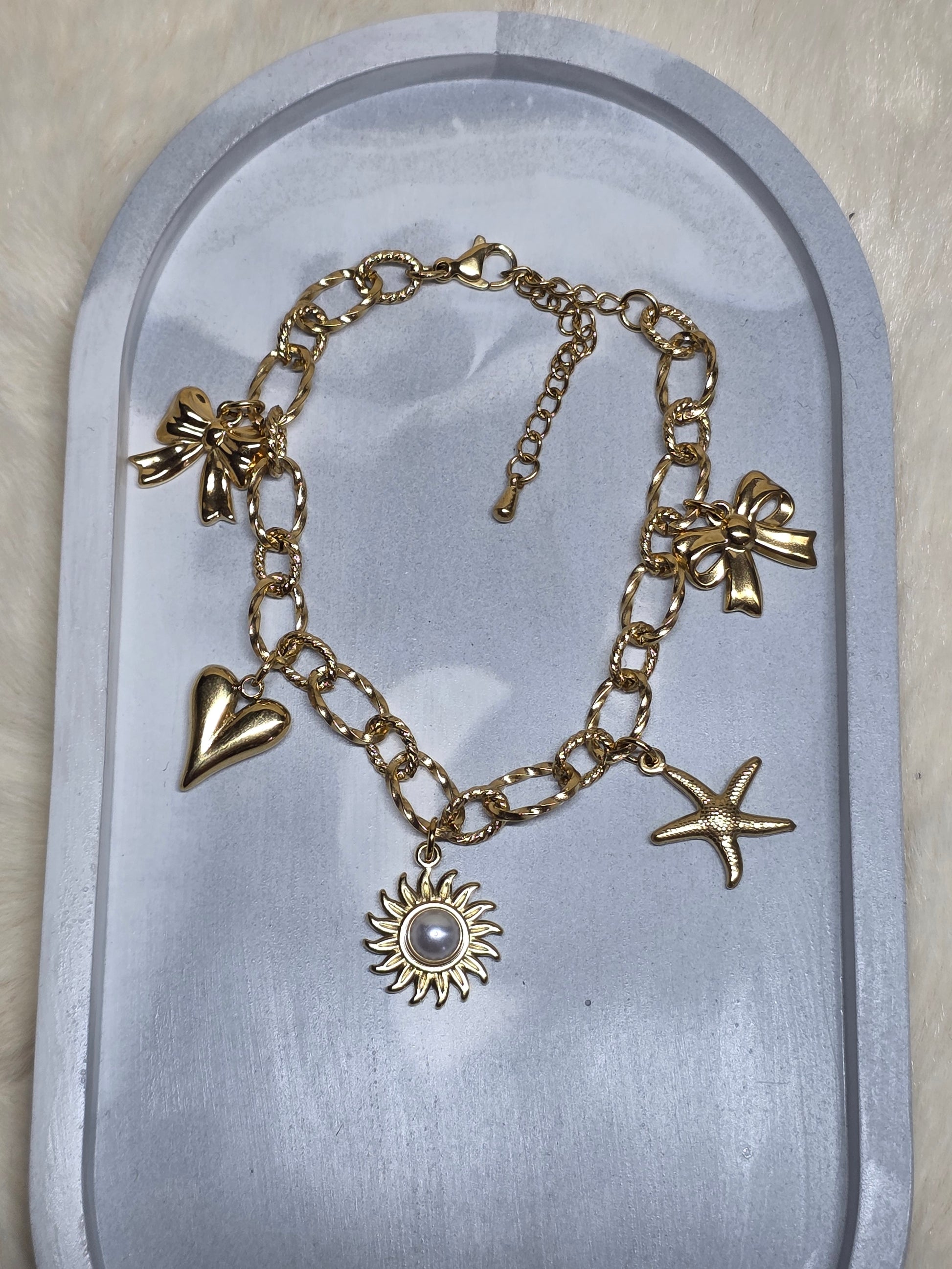 Ajoutez une touche d'éclat à votre poignet avec le bracelet MARIE, une création artisanale en acier inoxydable doré ou argenté. Agrémenté de breloques charmantes et doté d'une taille ajustable (17 cm + 5 cm de rajout), il s'adapte à toutes vos envies et ajoute un brin de fantaisie à chaque mouvement. Laissez-vous séduire par son allure délicate et ludique, parfaite pour illuminer vos journées avec style!