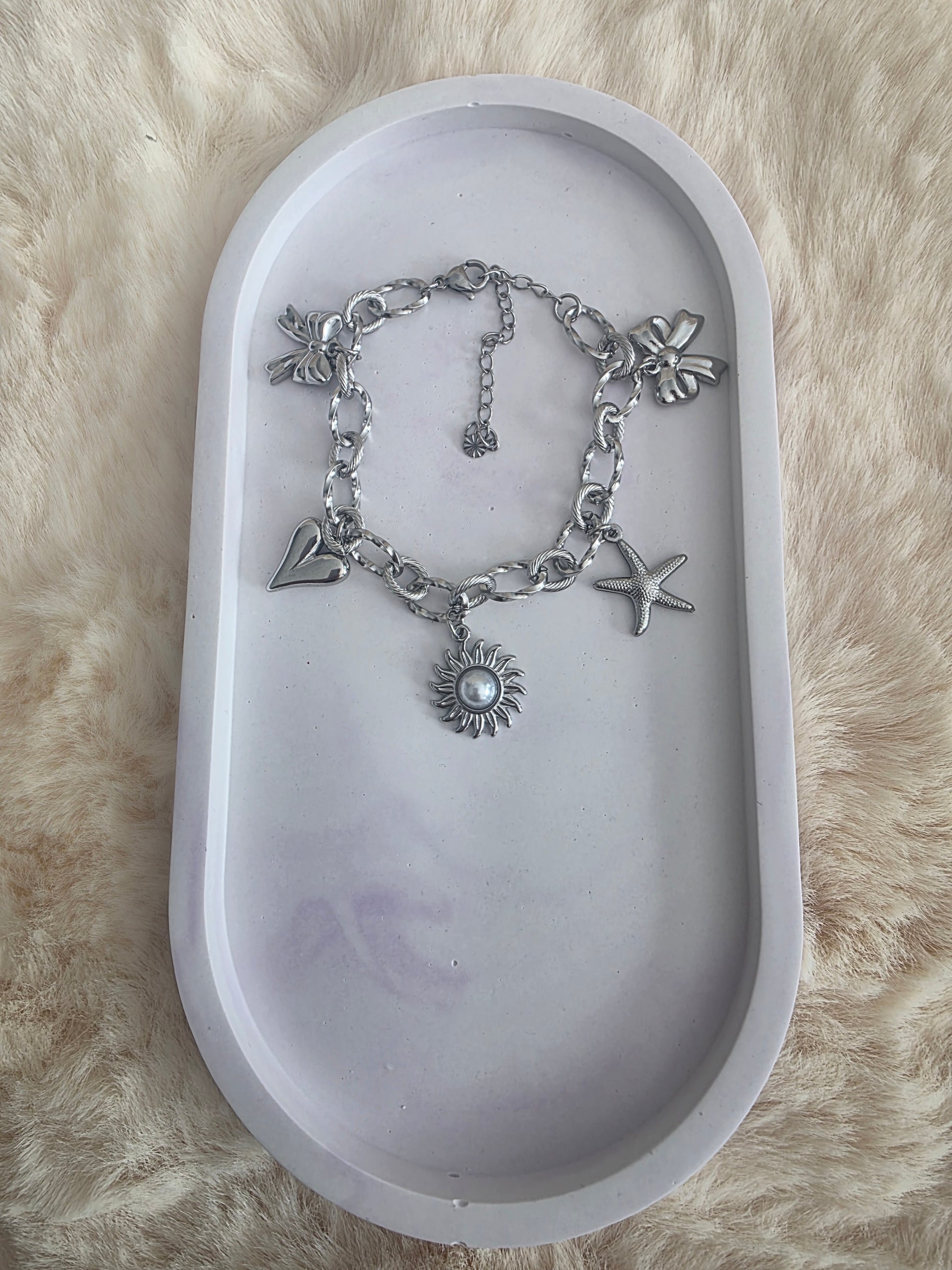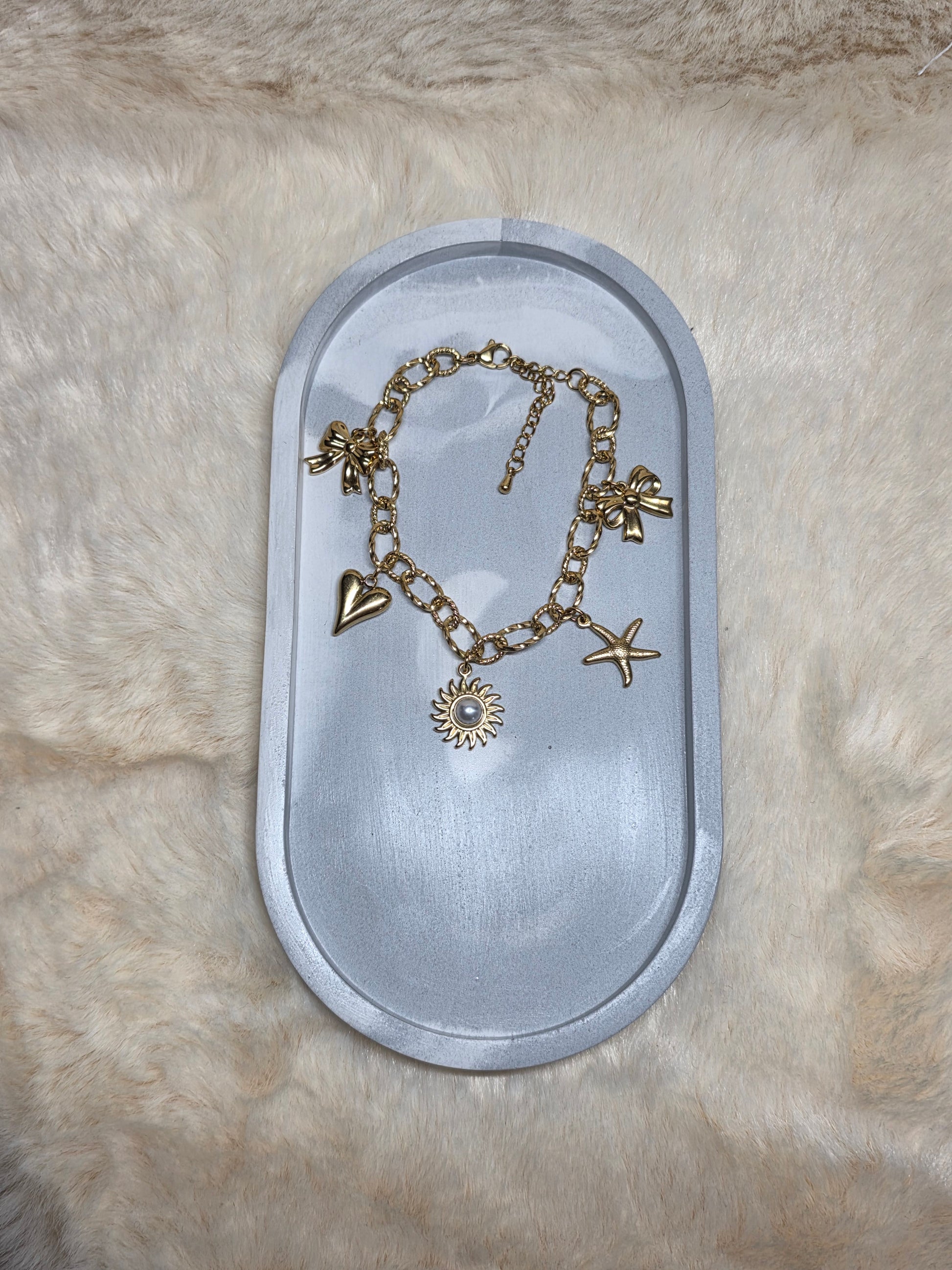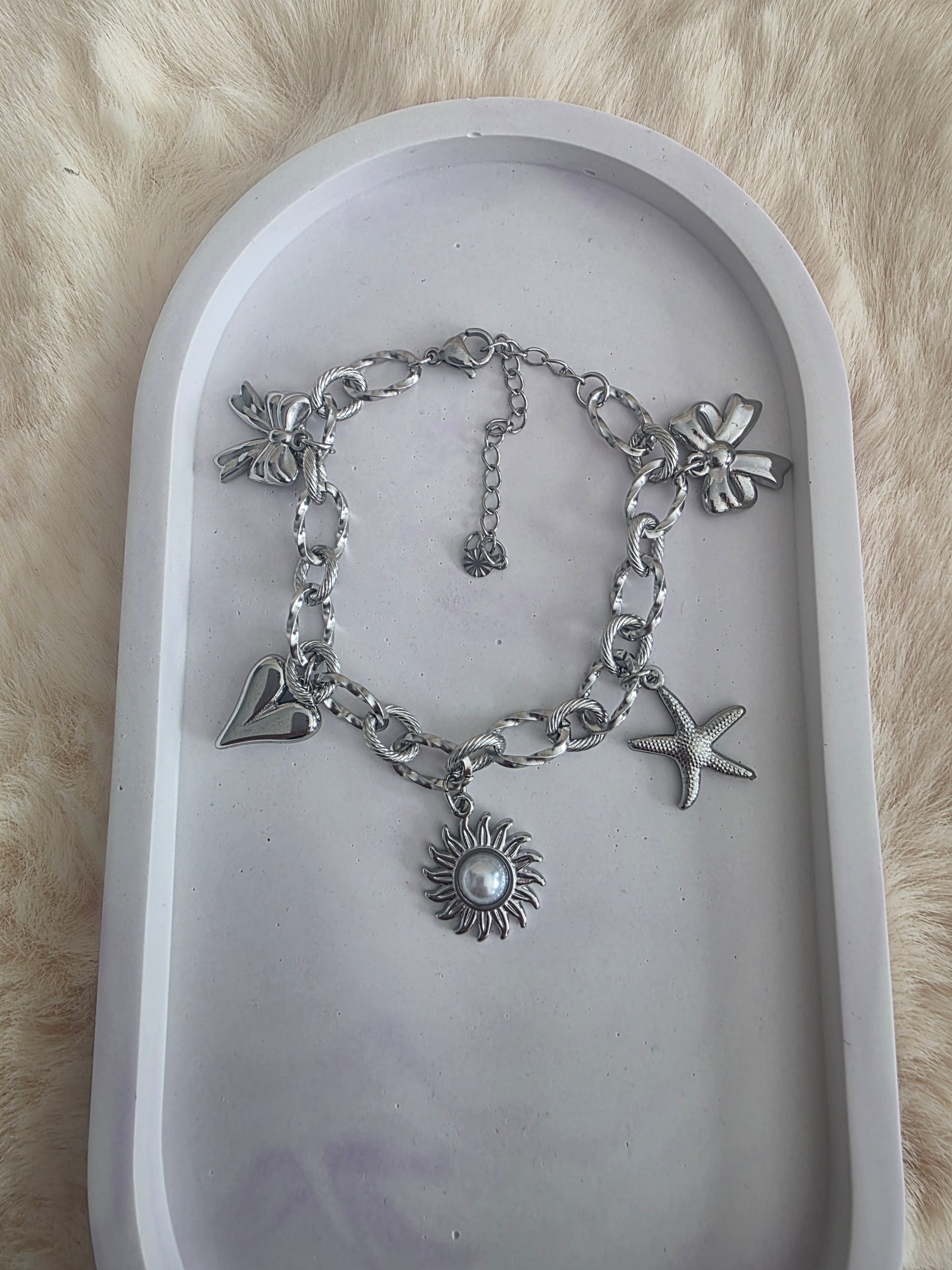 Ajoutez une touche d'éclat à votre poignet avec le bracelet MARIE, une création artisanale en acier inoxydable doré ou argenté. Agrémenté de breloques charmantes et doté d'une taille ajustable (17 cm + 5 cm de rajout), il s'adapte à toutes vos envies et ajoute un brin de fantaisie à chaque mouvement. Laissez-vous séduire par son allure délicate et ludique, parfaite pour illuminer vos journées avec style!