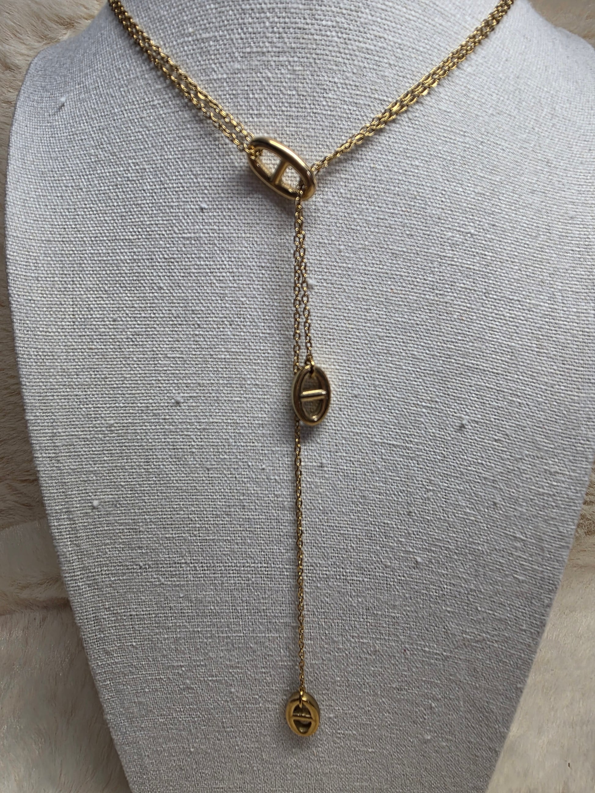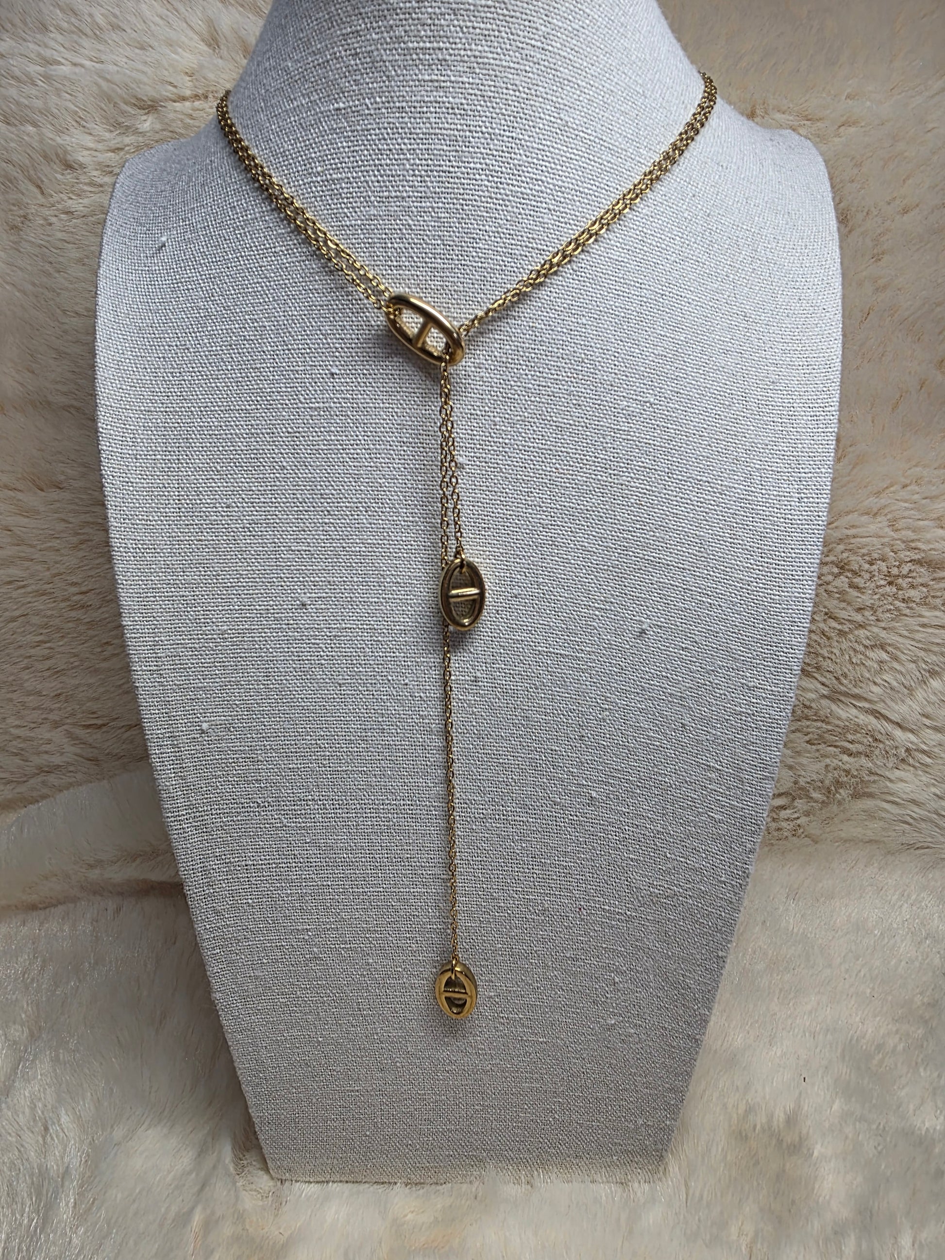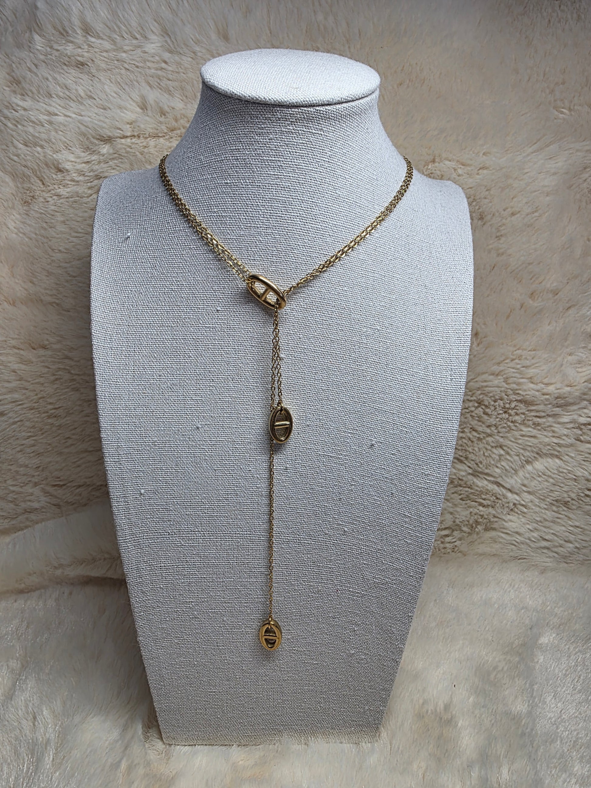 Le collier MARIE allie savoir-faire artisanal et modernité avec sa double coulisse et ses mailles marines en acier inoxydable, disponibles en finitions dorée ou argentée. Sa chaîne de 123 cm offre une longueur idéale pour un porté ajustable, garantissant confort et élégance. Résistant et léger, ce bijou sophistiqué s’adapte à toutes les occasions, sublimant aussi bien un look décontracté que plus habillé.