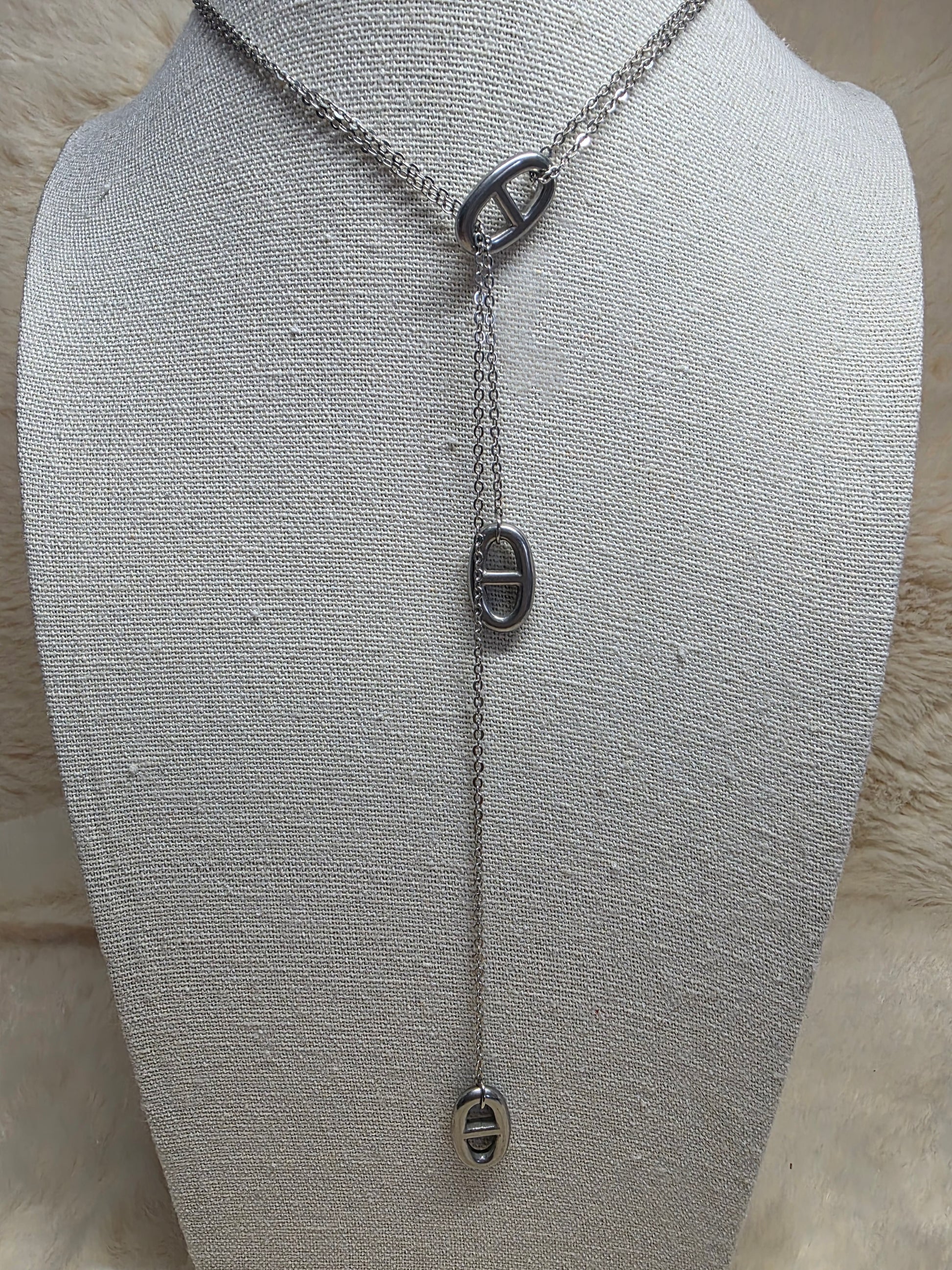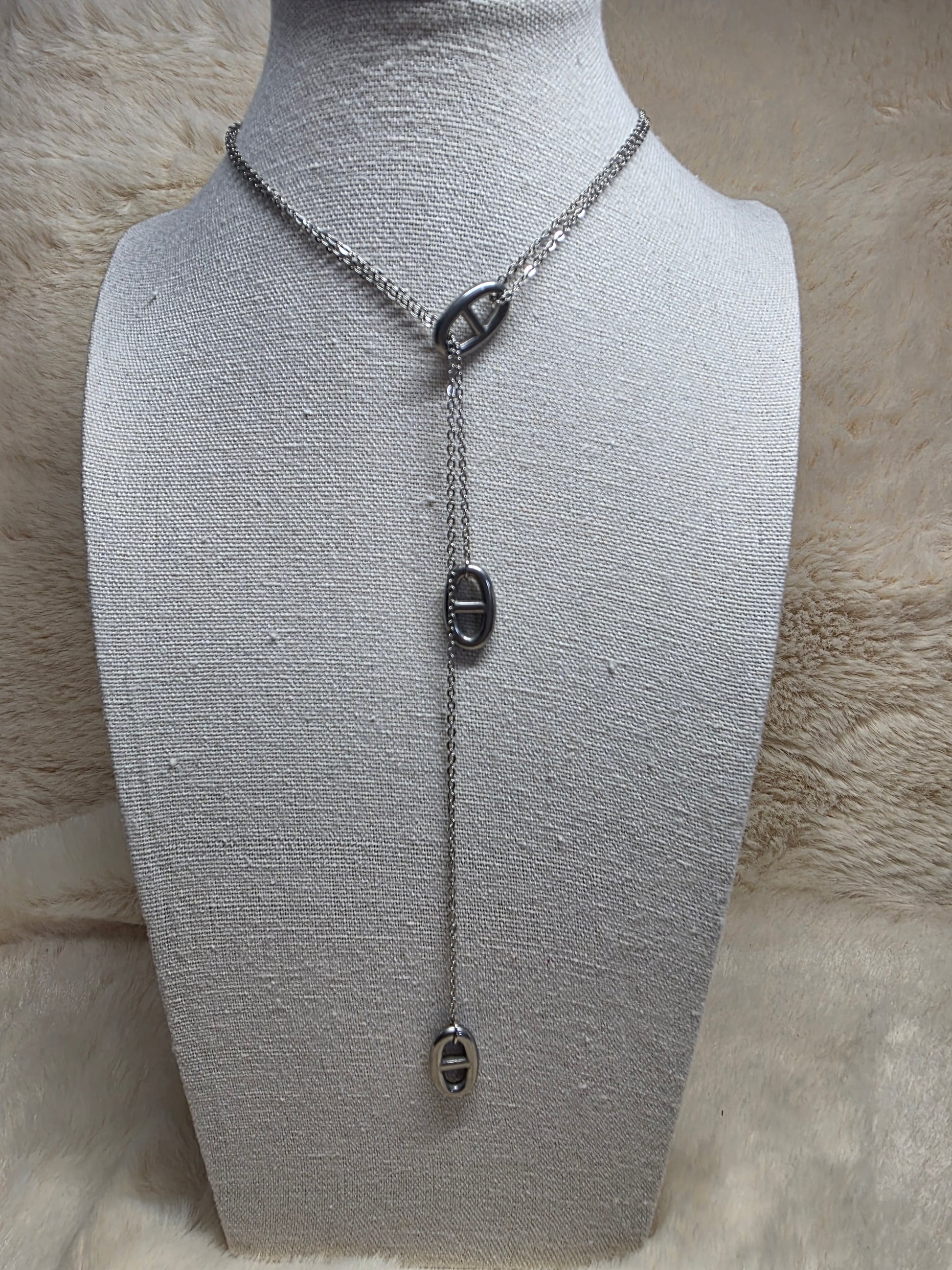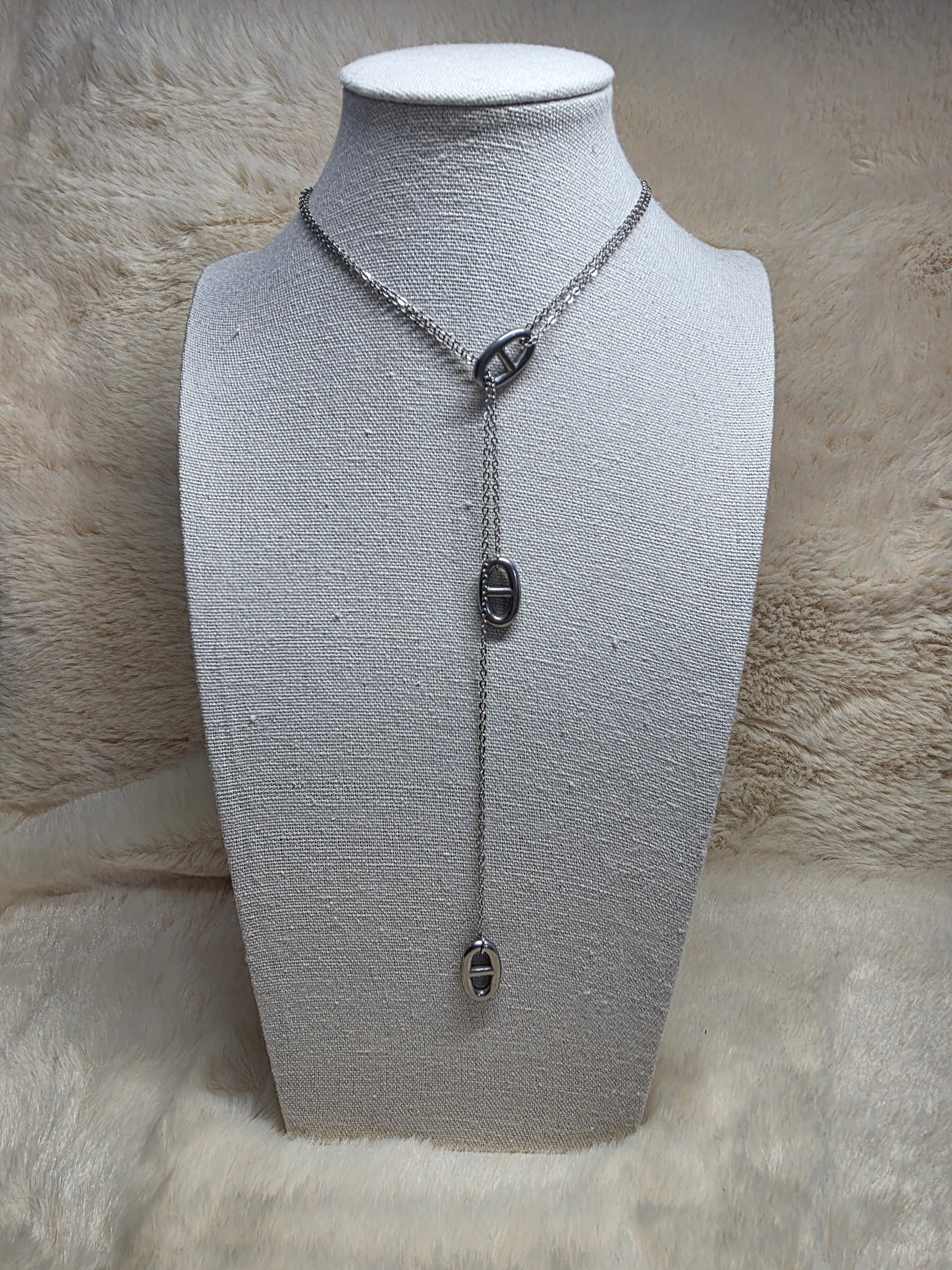 Le collier MARIE allie savoir-faire artisanal et modernité avec sa double coulisse et ses mailles marines en acier inoxydable, disponibles en finitions dorée ou argentée. Sa chaîne de 123 cm offre une longueur idéale pour un porté ajustable, garantissant confort et élégance. Résistant et léger, ce bijou sophistiqué s’adapte à toutes les occasions, sublimant aussi bien un look décontracté que plus habillé.