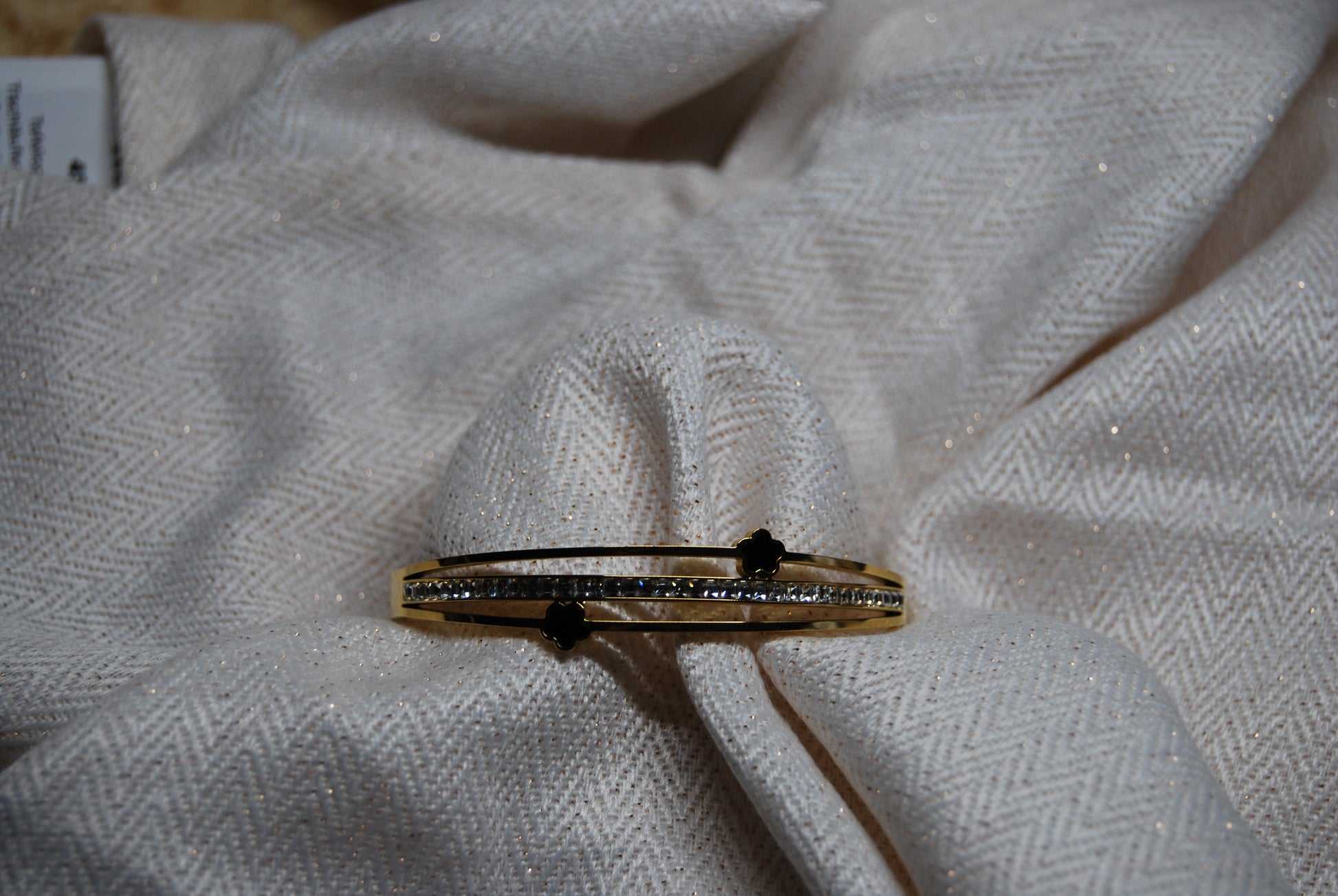 Ce jonc MARINE mêle élégance et audace avec son acier inoxydable doré et noir, sublimé par de délicats strass scintillants. Un accessoire parfait pour twister votre style avec une touche de brillance et de caractère, tout en restant léger et confortable à porter. Laissez-vous séduire par cette alliance de couleurs qui mettra du pep’s à toutes vos tenues !