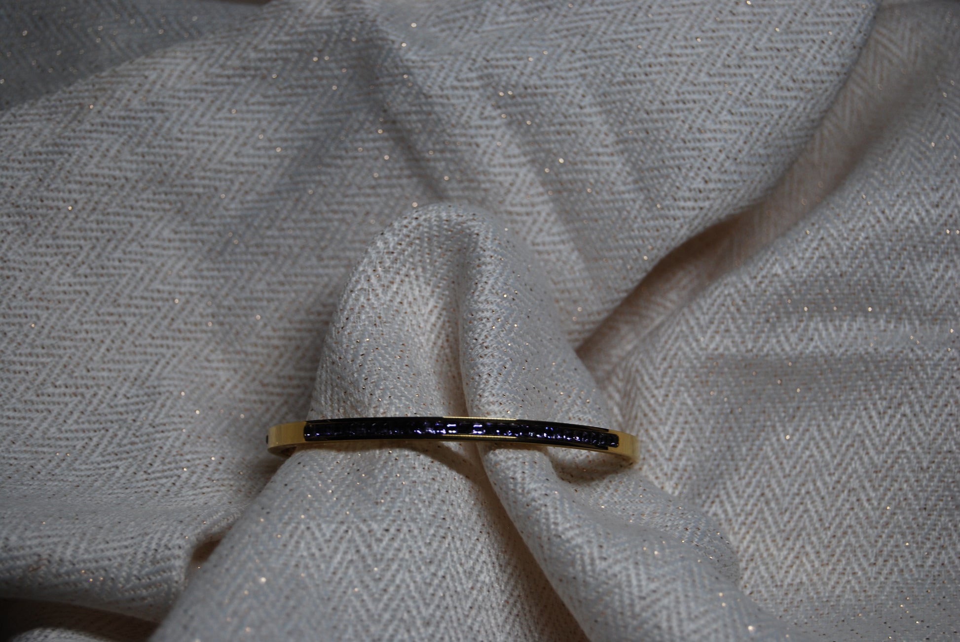 Sublimez votre style avec le jonc MELANIE en acier inoxydable doré, orné d'élégants strass qui captent la lumière à chaque mouvement. Disponible en plusieurs couleurs, il s’adapte parfaitement à toutes vos tenues, ajoutant une touche sophistiquée à votre poignet. Résistant et raffiné, ce bracelet est l’accessoire idéal pour illuminer votre quotidien.