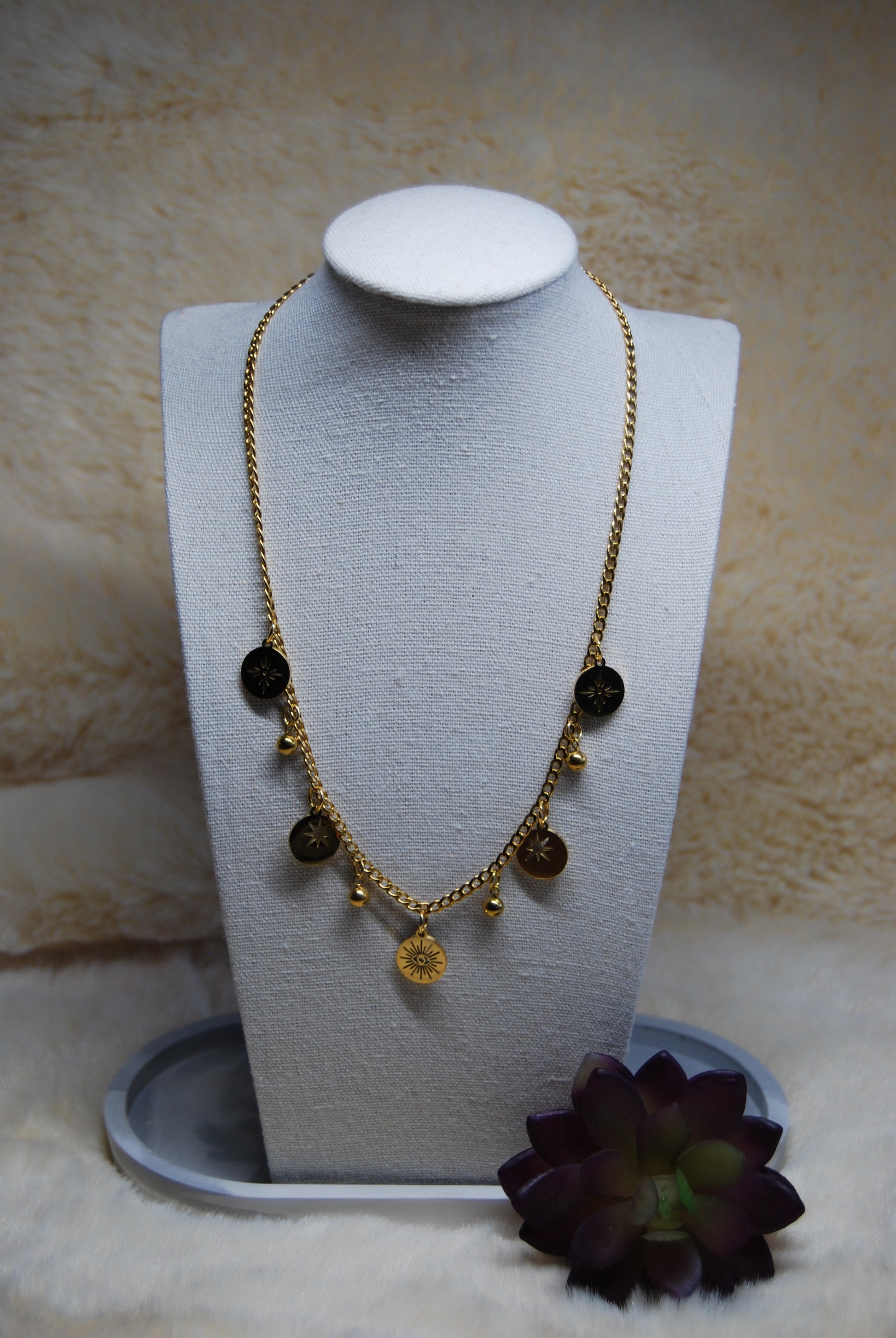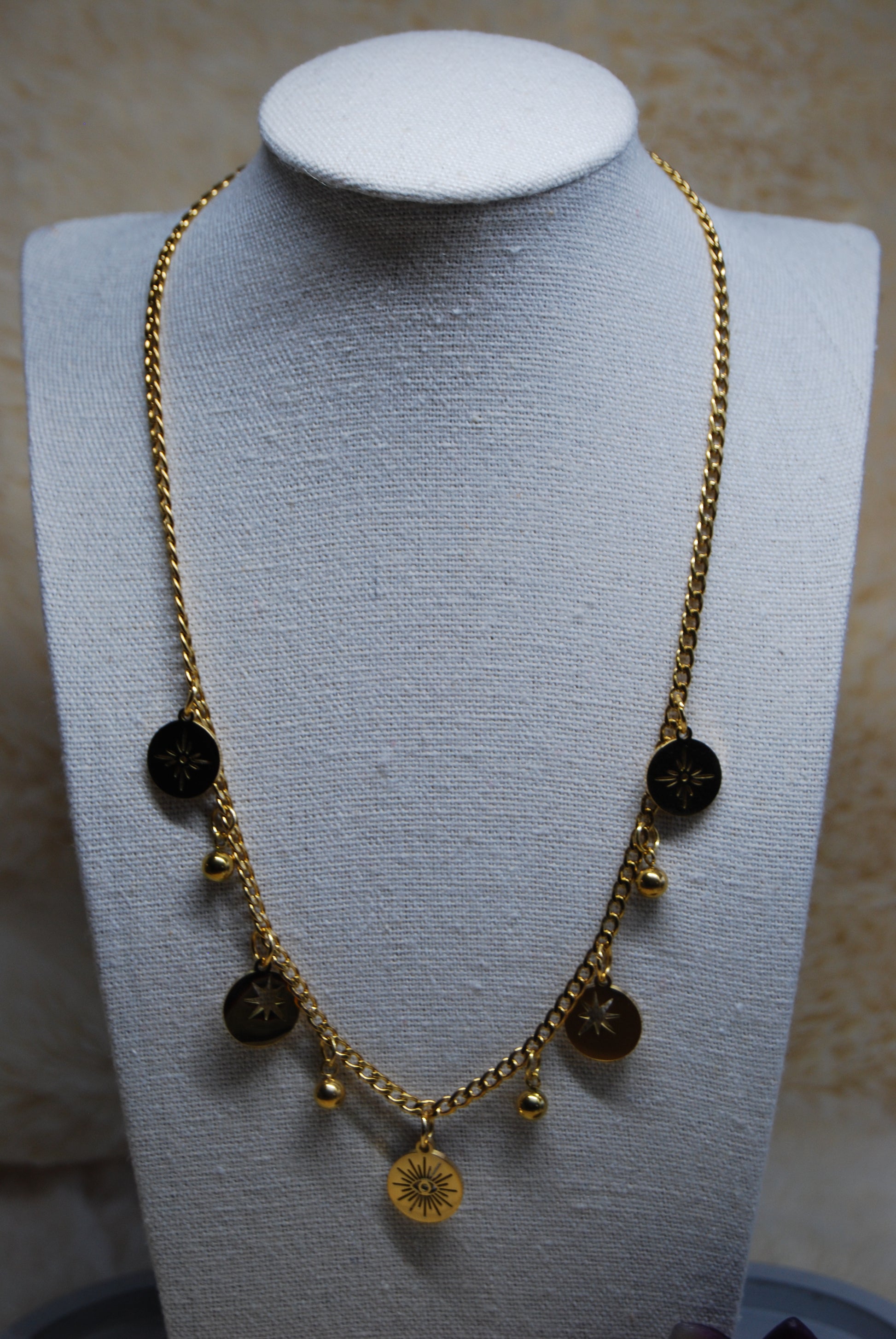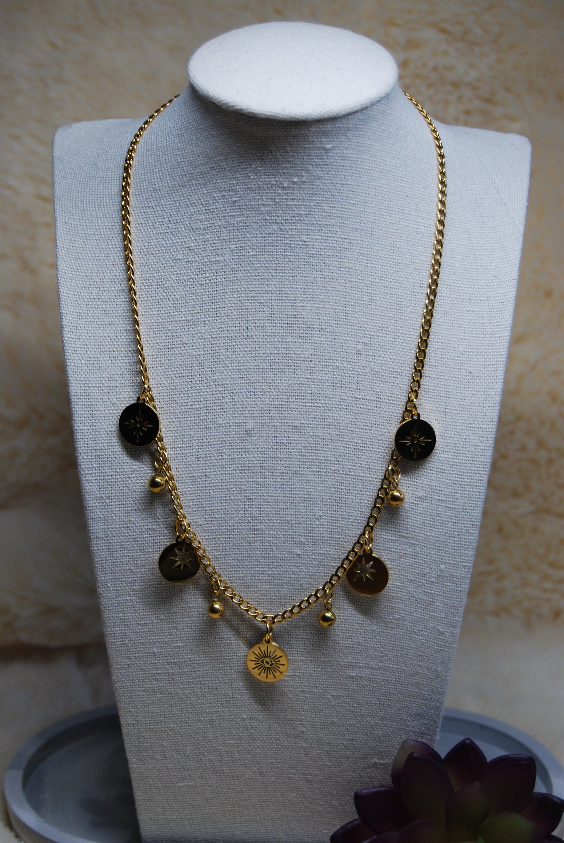 Affirmez votre style avec le collier SHELBY, une création artisanale en acier inoxydable doré ou argenté. Ses breloques uniques apportent une touche audacieuse et personnelle à votre look. Sa taille réglable (41 cm + 5 cm de rajout) garantit un ajustement parfait, pour que vous portiez votre audace où que vous alliez. Osez la différence avec ce bijou qui ne passe pas inaperçu.