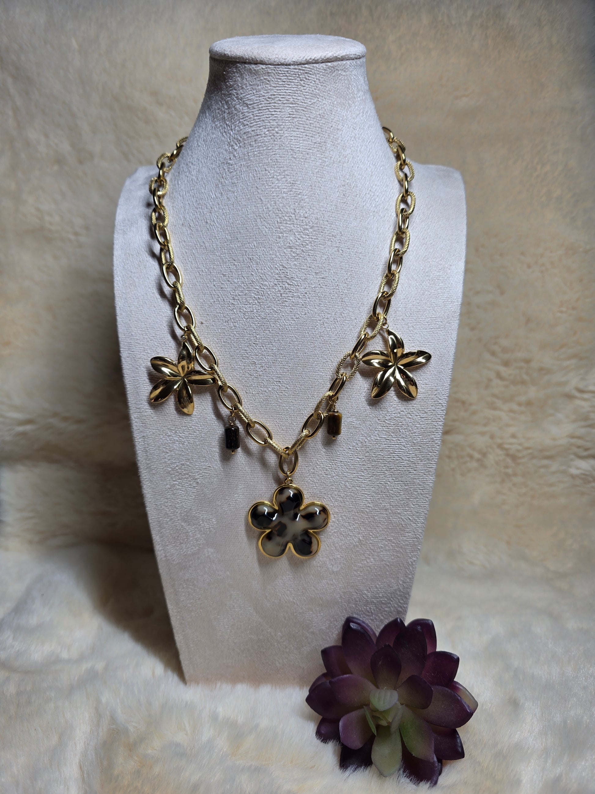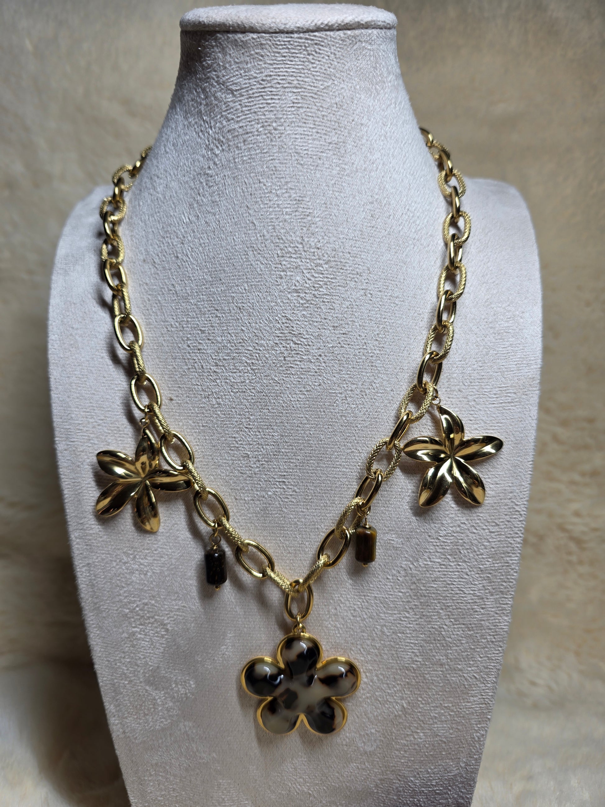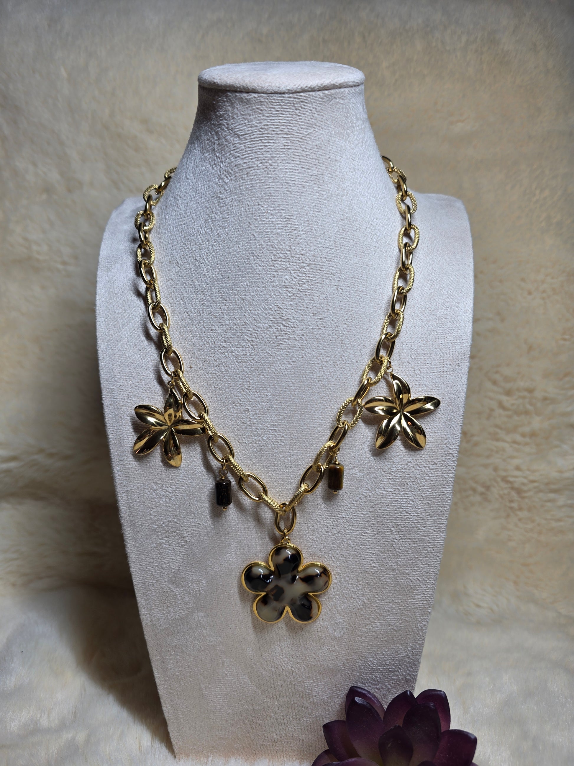 Découvrez SHERYL, un collier en acier inoxydable doré qui allie élégance et fantaisie. Orné de breloques délicates, ce bijou artisanal capture l'essence du style personnel. Sa longueur réglable s'adapte à tous les cous, tandis que sa finition dorée apporte une touche de chaleur à vos tenues. Chaque création est façonnée avec soin, garantissant un accessoire unique et durable.